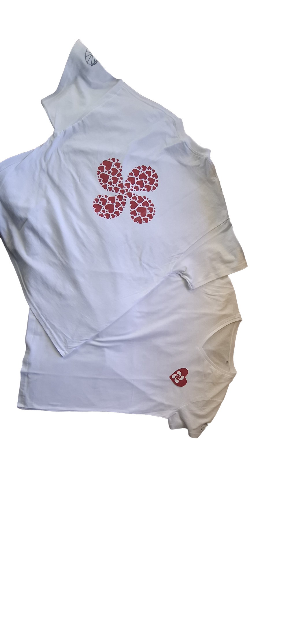 Le design principal est imprimé dans le dos, pour un rendu moderne et élégant, tandis qu'au niveau du cœur se trouve un mini cœur rouge, qu'un prénom en flex rouge peut-être ajouté pour une touche intime 💞mbolique.