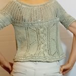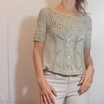 Pull manches courtes beige t. 38 tricoté main