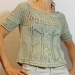 Il est réalisé en qualité Océane de Bergère de France (80% viscose 20% lin, fil fabriqué en France), un fil ruban frais et doux sur la peau, dans un coloris satiné, coloris Galet, aiguilles n° 3,5 et 4.