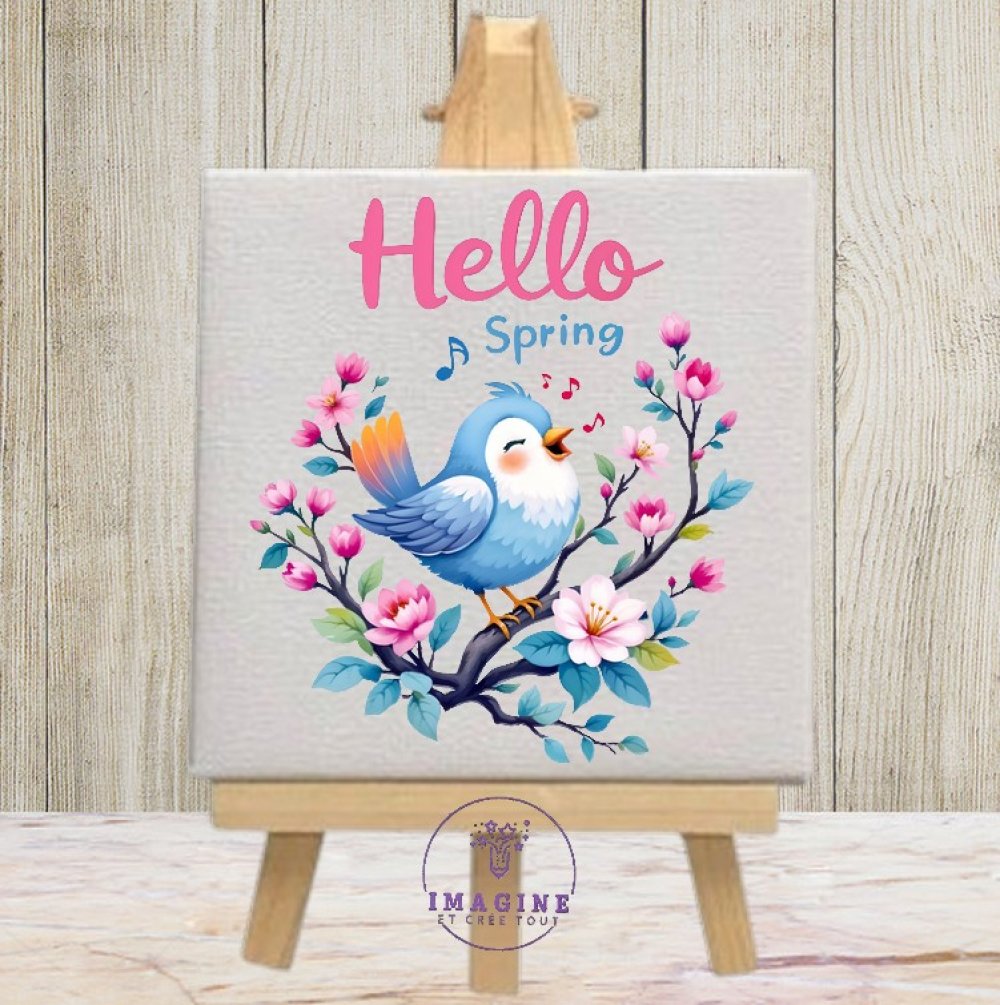 Tableau mural - sublimation - impression infusible ink - hello spring - a cute bird - branch