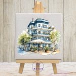 Tableau mural - sublimation - impression infusible ink - house - hotel - painted - watercolor - arbres - plantes