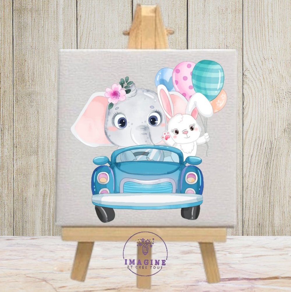 Tableau mural - sublimation - impression infusible ink - little - elephant - drives - a car