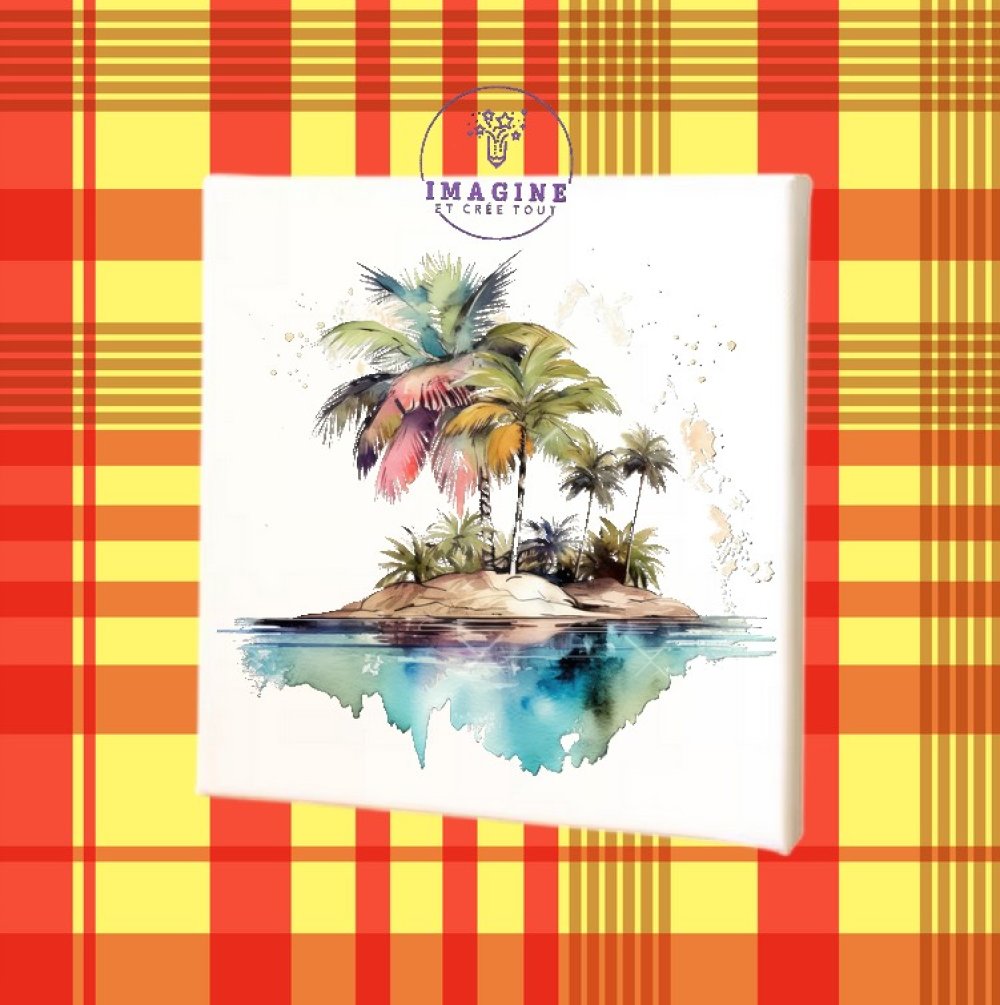 Tableau mural - sublimation - impression infusible ink - toile - canevas - paysage tropical - - cocotiers - sable - lagon