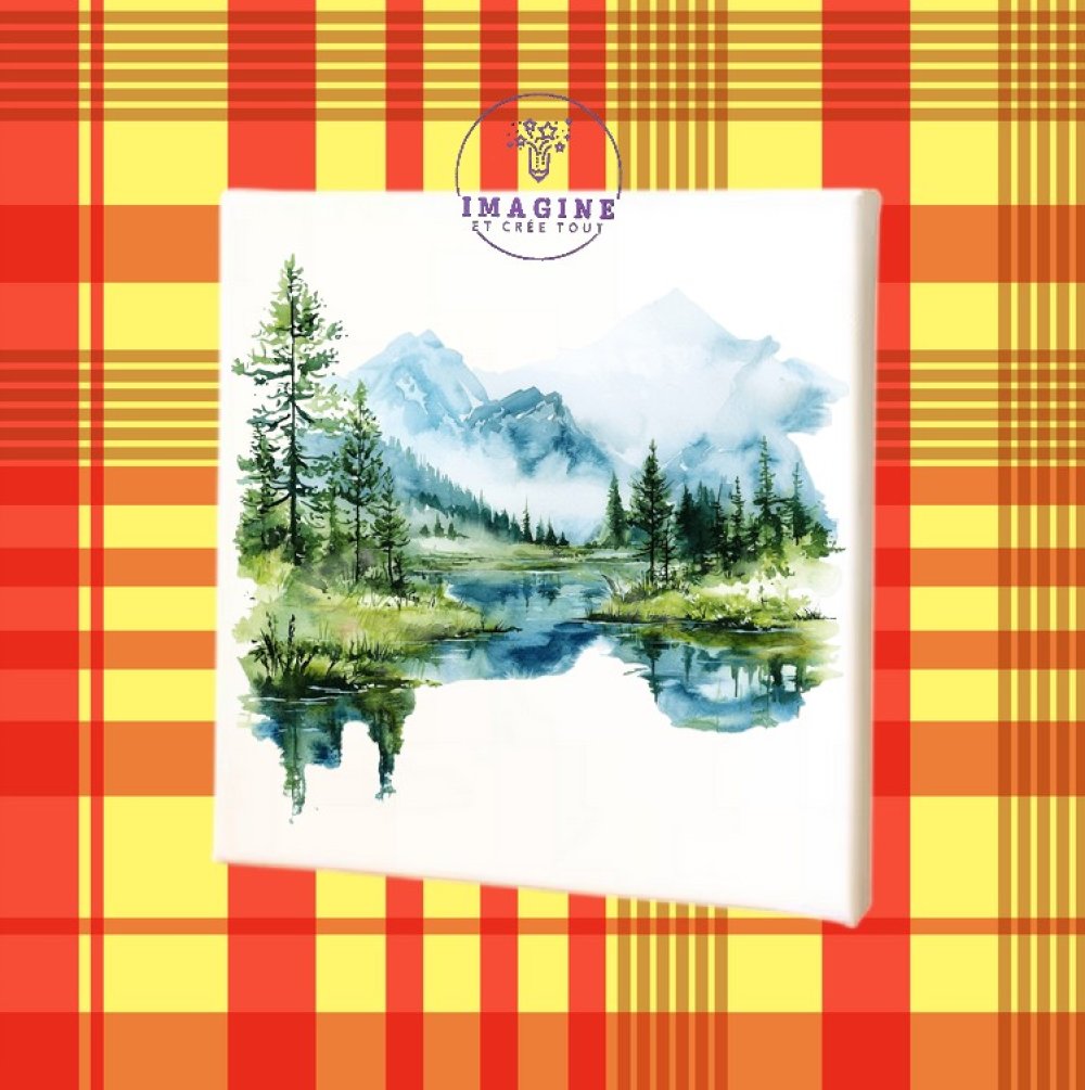 Tableau mural - sublimation - impression infusible ink - toile - canvas - watercolor - lac - montagne - aquarelle