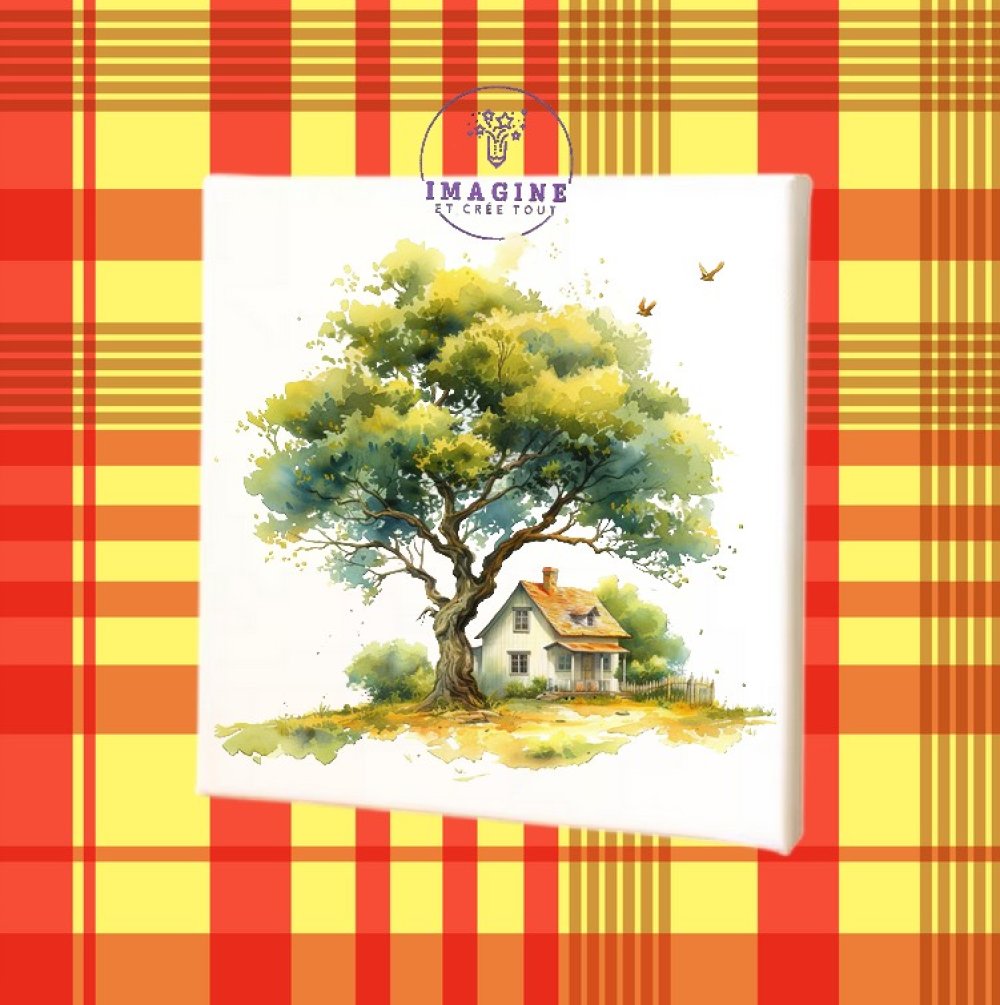 Tableau mural - sublimation - impression infusible ink - toile - canvas - maison - house - arbre - tree - watercolor