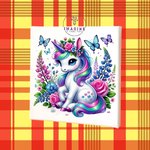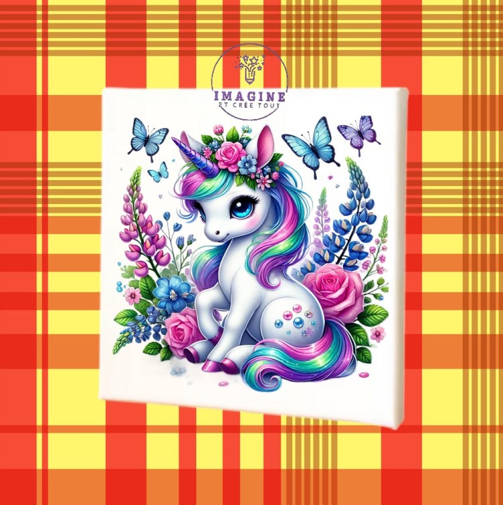 Tableau mural - sublimation - impression infusible ink - toile - canvas - licorne - corne - papillons - arc en ciel - rose
