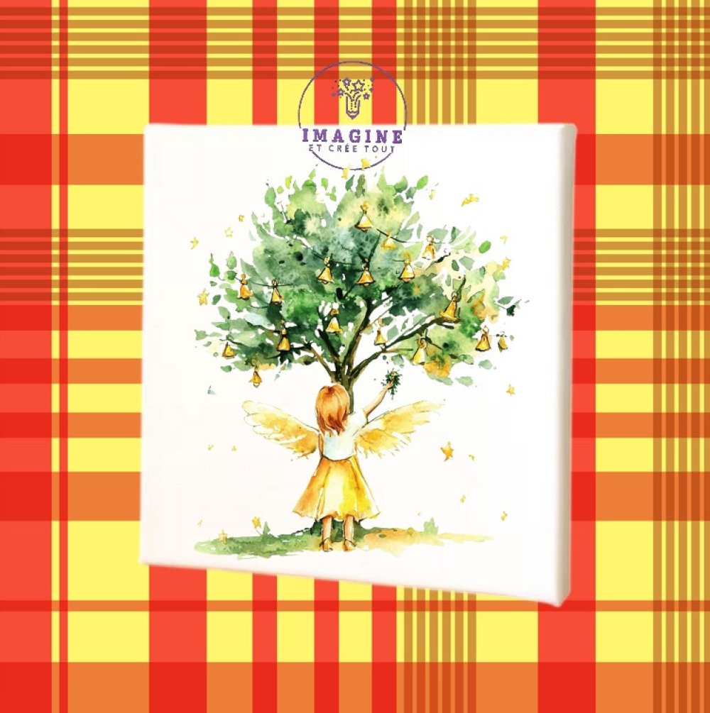 Tableau mural - sublimation - impression infusible ink - toile - canvas - angel - ange - tree - arbre - watercolor - cloches