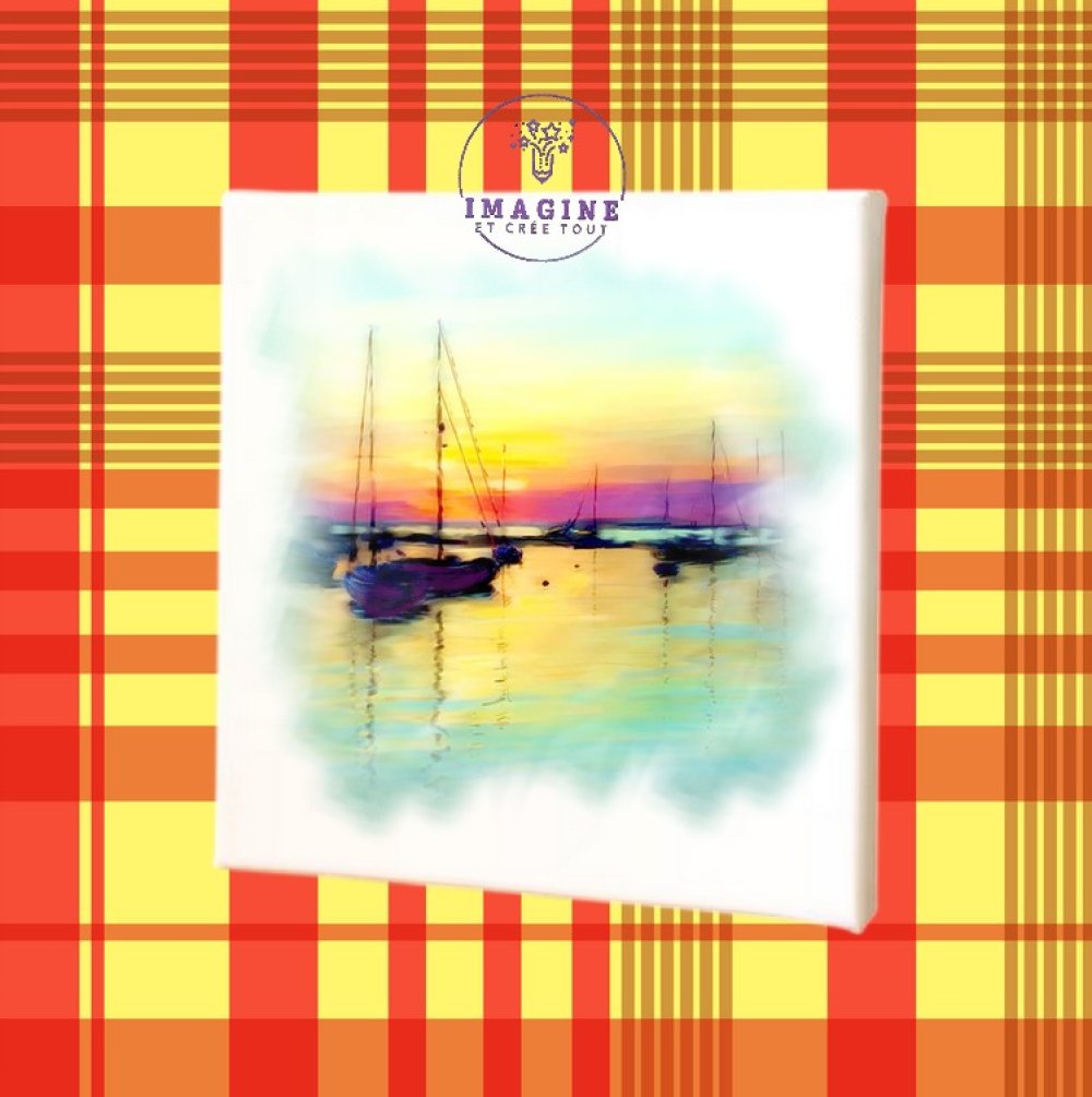 Tableau mural - sublimation - impression infusible ink - toile - canvas - peinture - aquarelle - lagune - voiliers