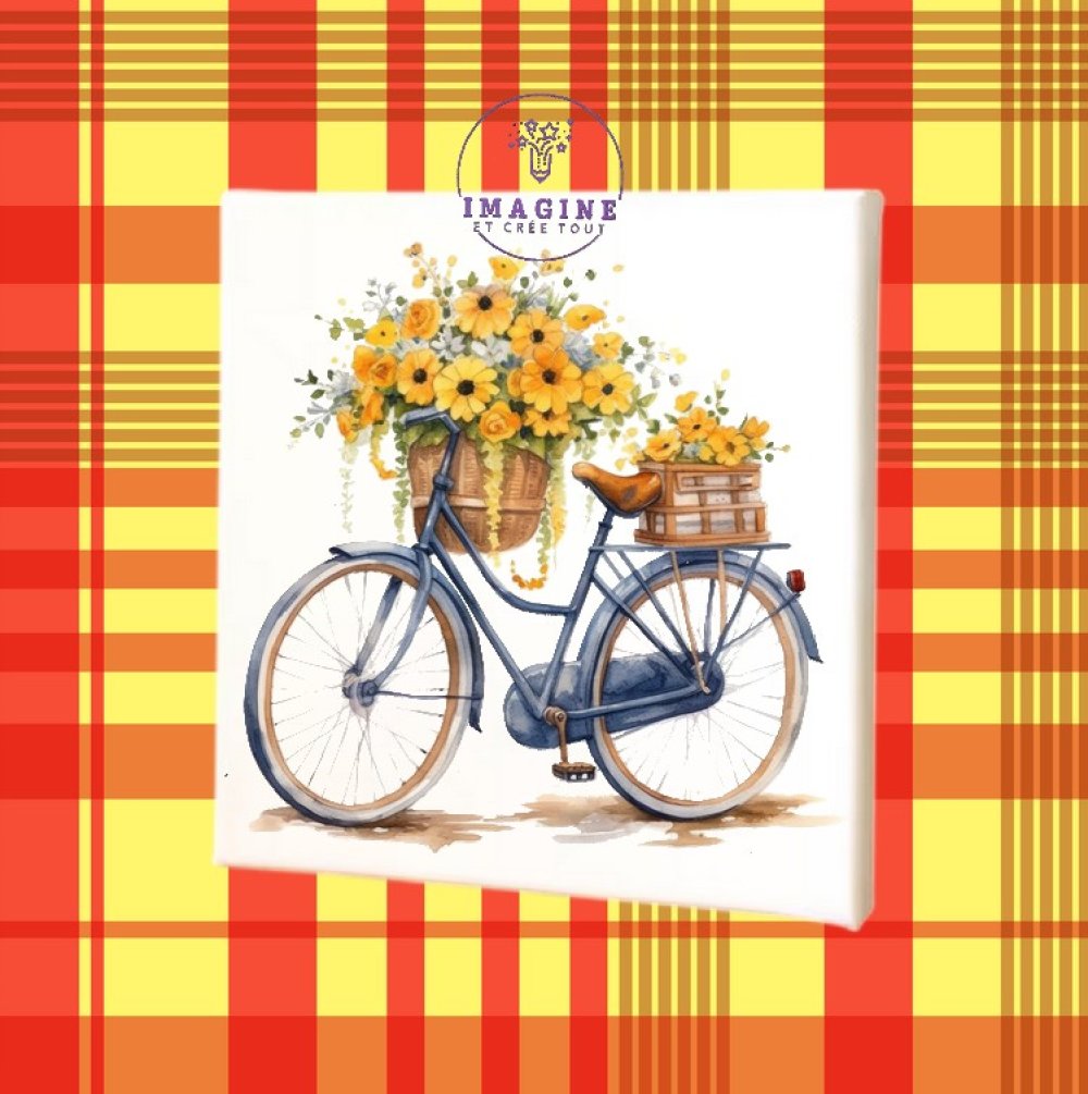 Tableau mural - sublimation - impression infusible ink - toile - canvas - bicyclette - flowers - panier - bicycle