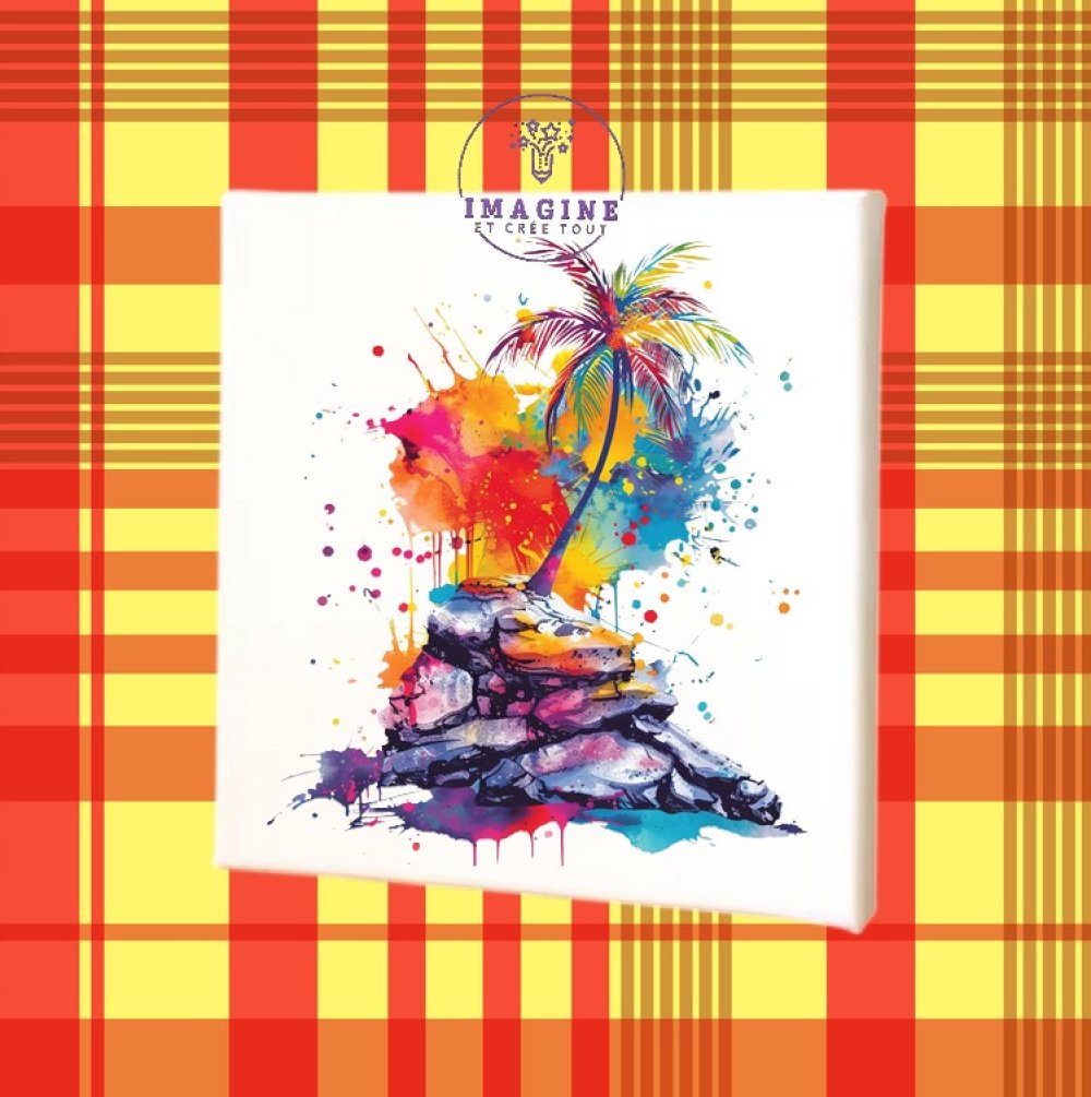 Tableau mural - sublimation - impression infusible ink - toile - canvas - colorful - palm - palmier - rochers - couleurs