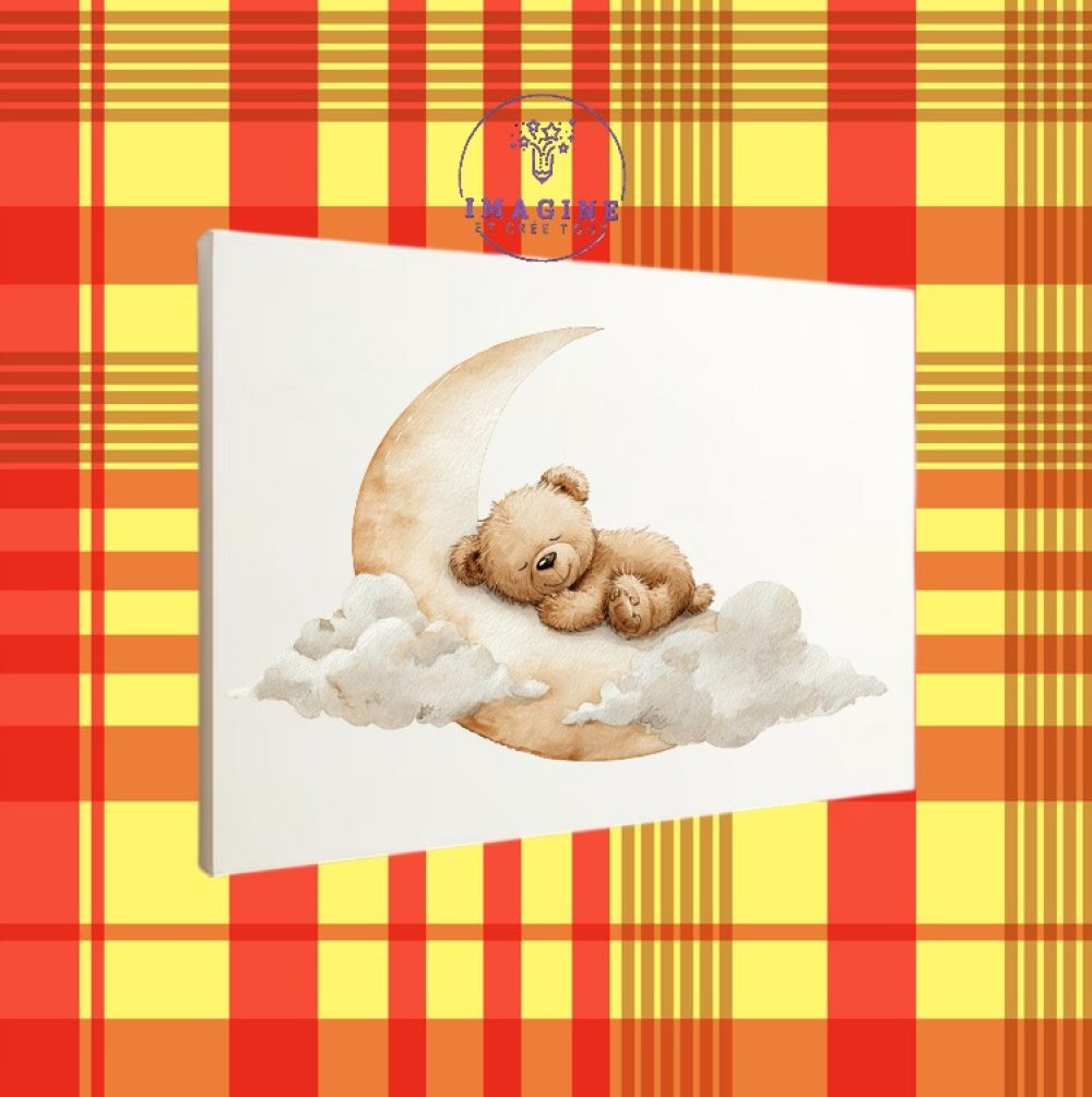 Tableau mural - sublimation - impression infusible ink - toile - canvas - Teddy Bear - ourson - lune - sommeil - baby