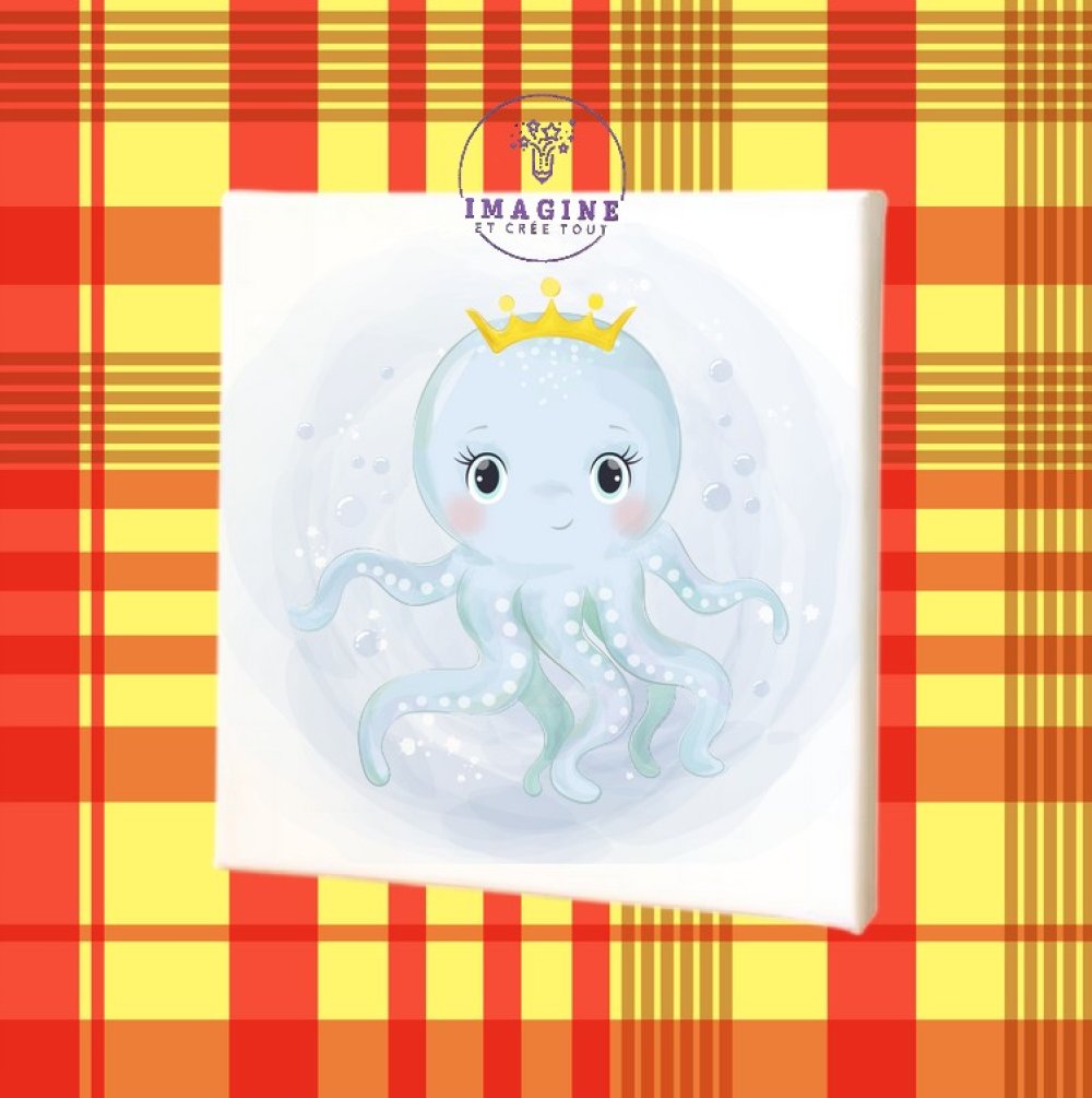 Tableau mural - sublimation - impression infusible ink - toile - canvas - princesse - pieuvre - watercolor - océan