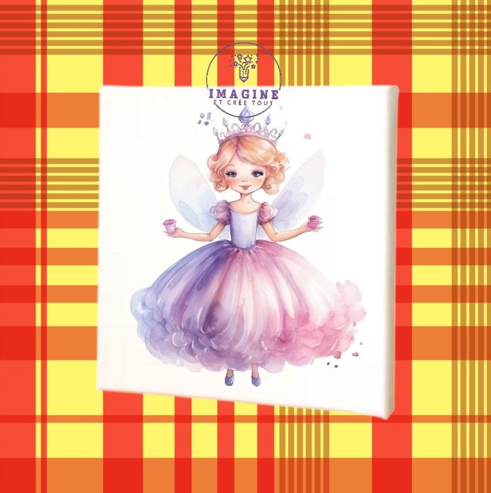 Tableau mural - sublimation - impression infusible ink - toile - canvas - princesse - fairy - fée - couronne - watercolor