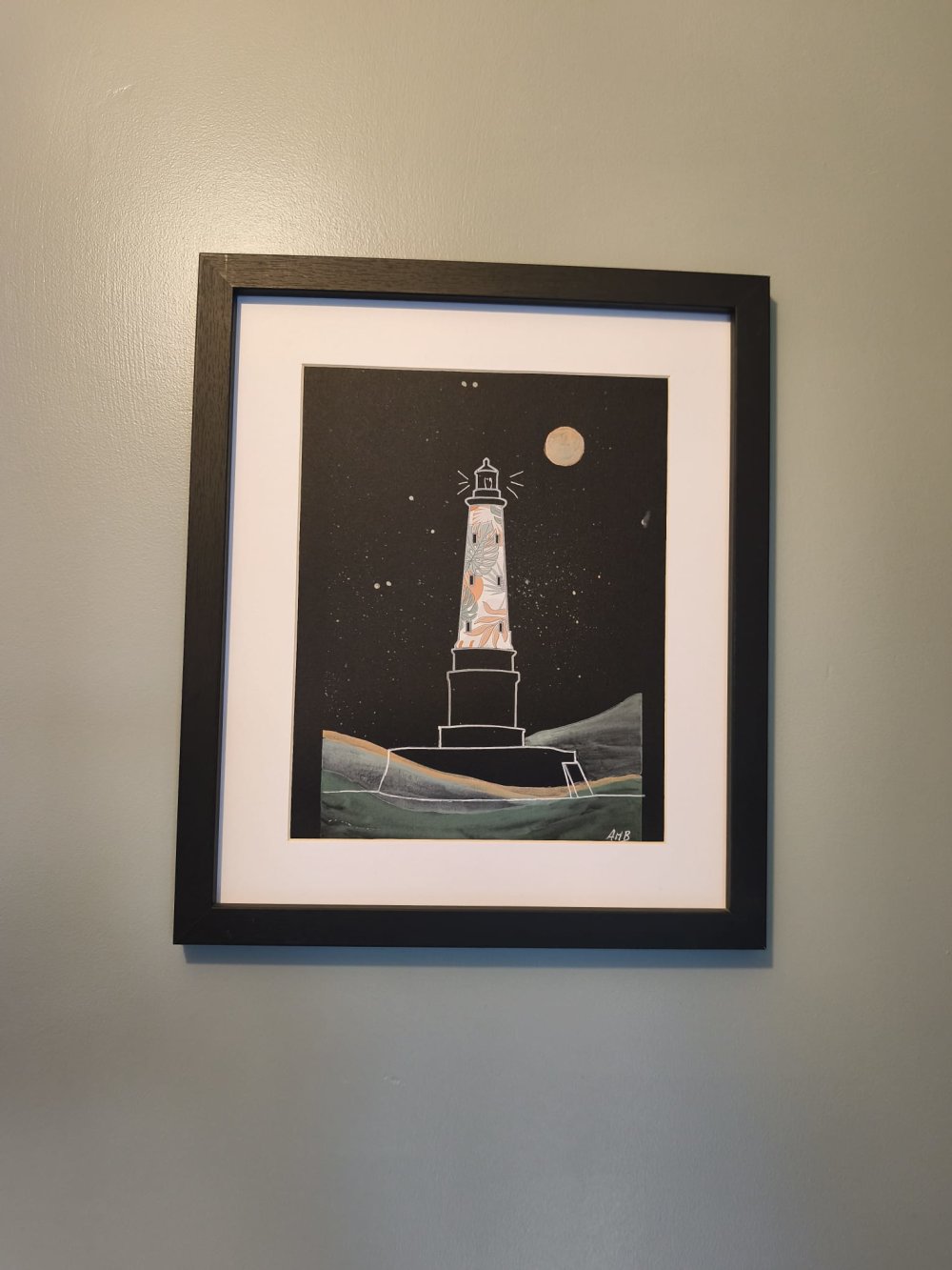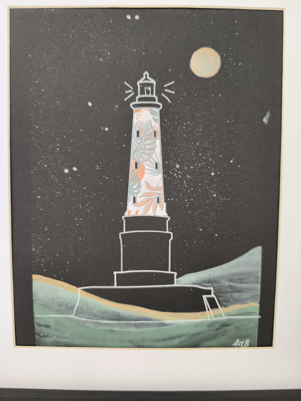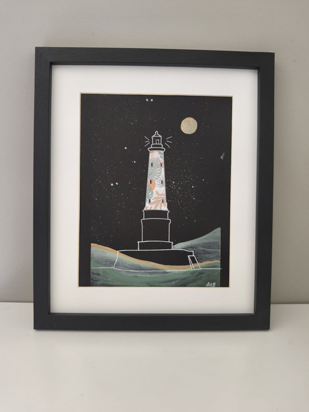La Lumière : Nous utilisons la peinture pour créer un ciel nocturne d'une profondeur saisissante, mettant en scène la lumière perçante du phare.