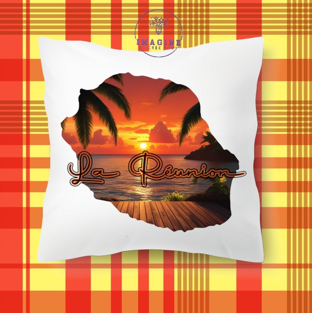 Taie personnalisé - lit - sommeil - sublimation - carte île de la réunion - couché soleil - 974 - personnalisation