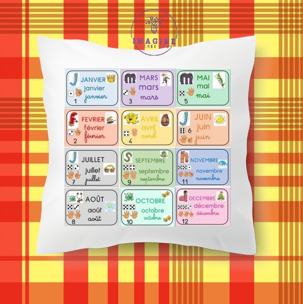 Taie personnalisé - lit - sommeil - sublimation - impression infusible ink - les mois de l'année en Français - éducatif