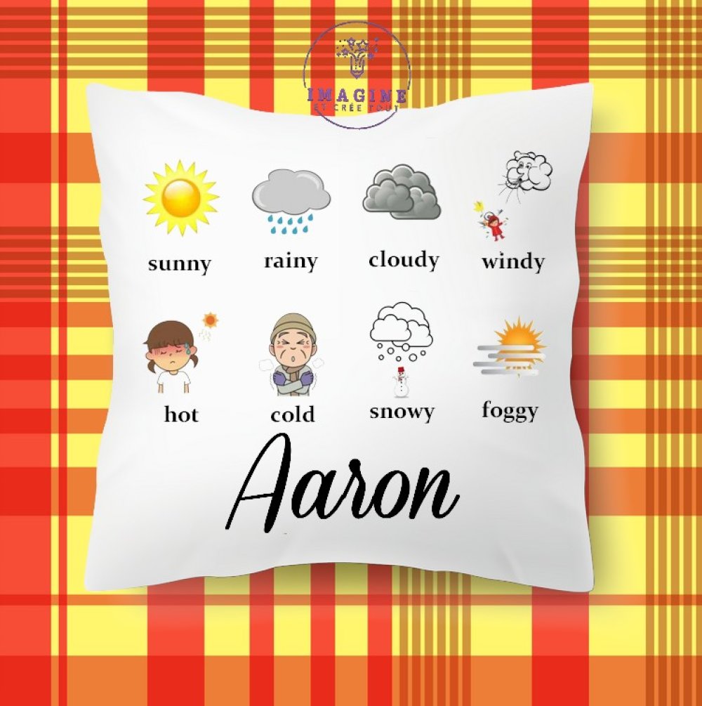 Taie personnalisé - lit - sommeil - sublimation - impression infusible ink - la météo en anglais - apprentissage - éducatif