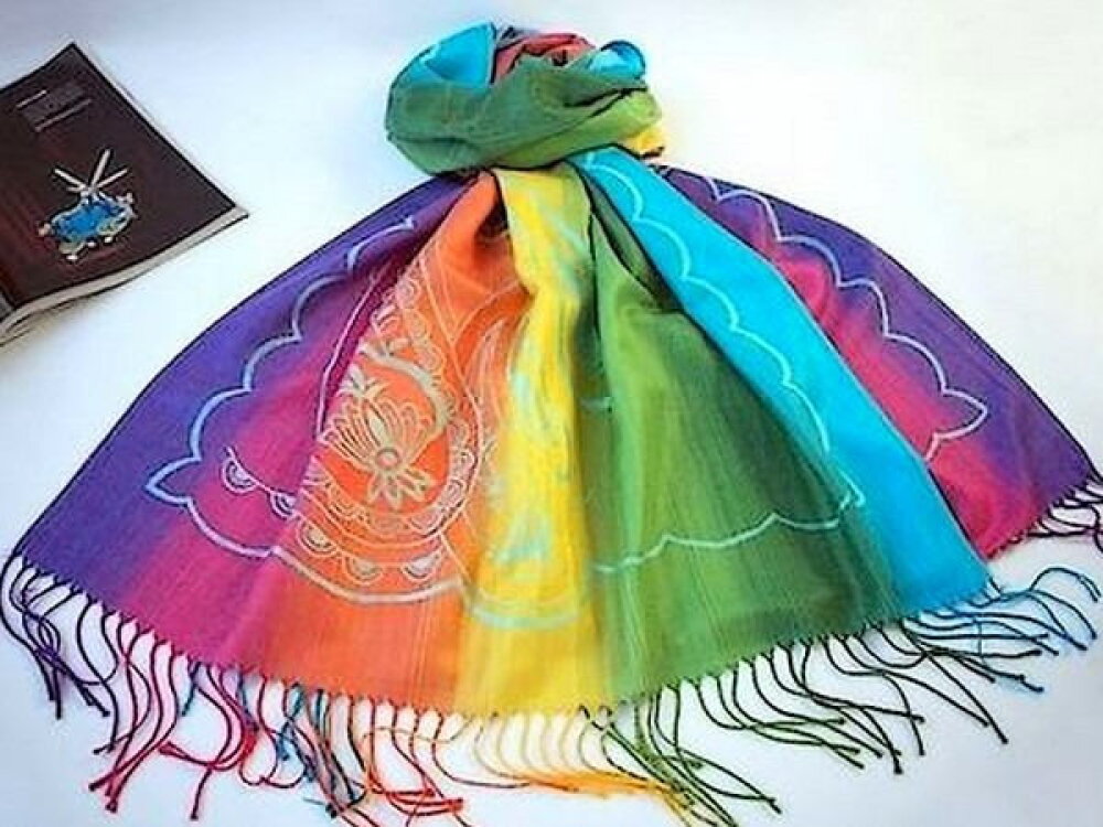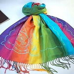 Je vous propose un très jolie étole multicolore en fibre acrylique technique de tissage traditionnelle balinaise imitant merveilleusement le style Pashmina (imitation de la soie)