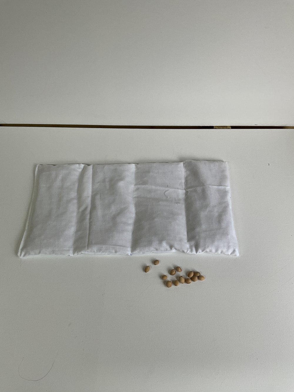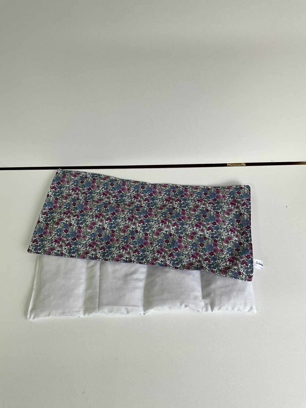 Bouillotte sèche : 1 housse en tissu coton / intérieur coton . Lavable à 40• environ Une poche 100% coton , contenant les noyaux de cerises . Passer la poche de noyaux de cerises 30/40 sec au micro onde et profitez de sa chaleur environ 30 min . Idéal pour soulager les épaules ou les maux de ventre .