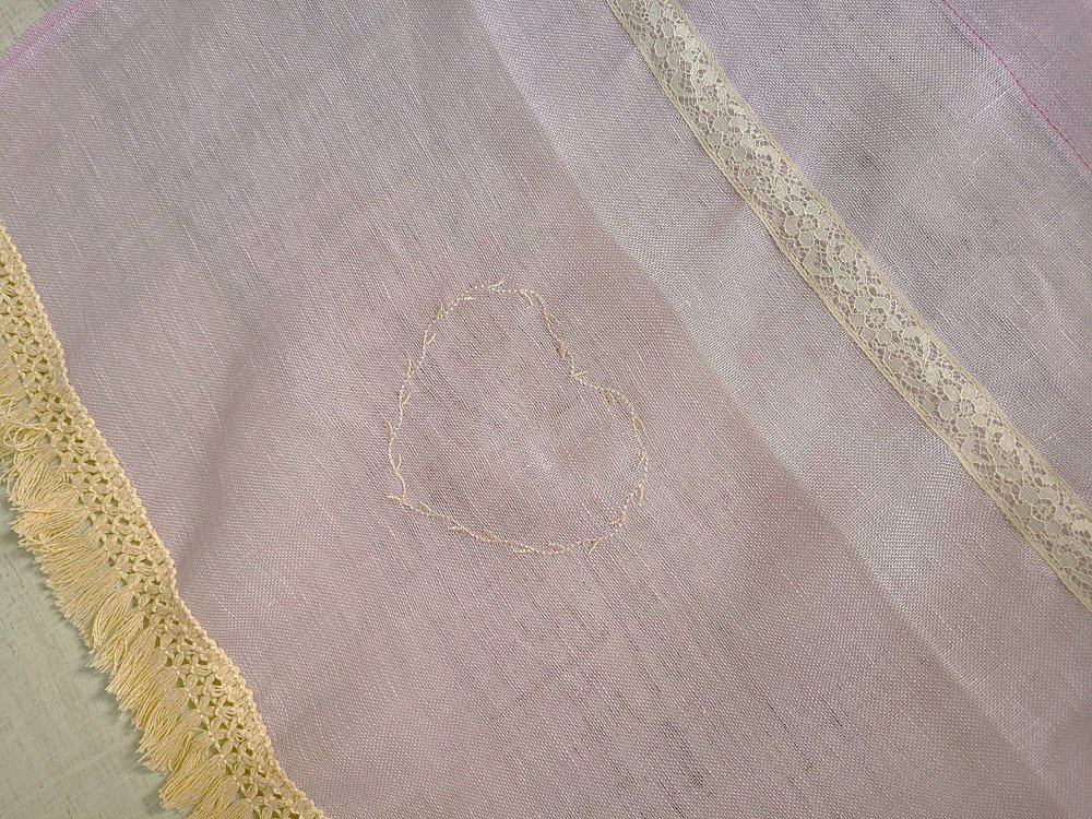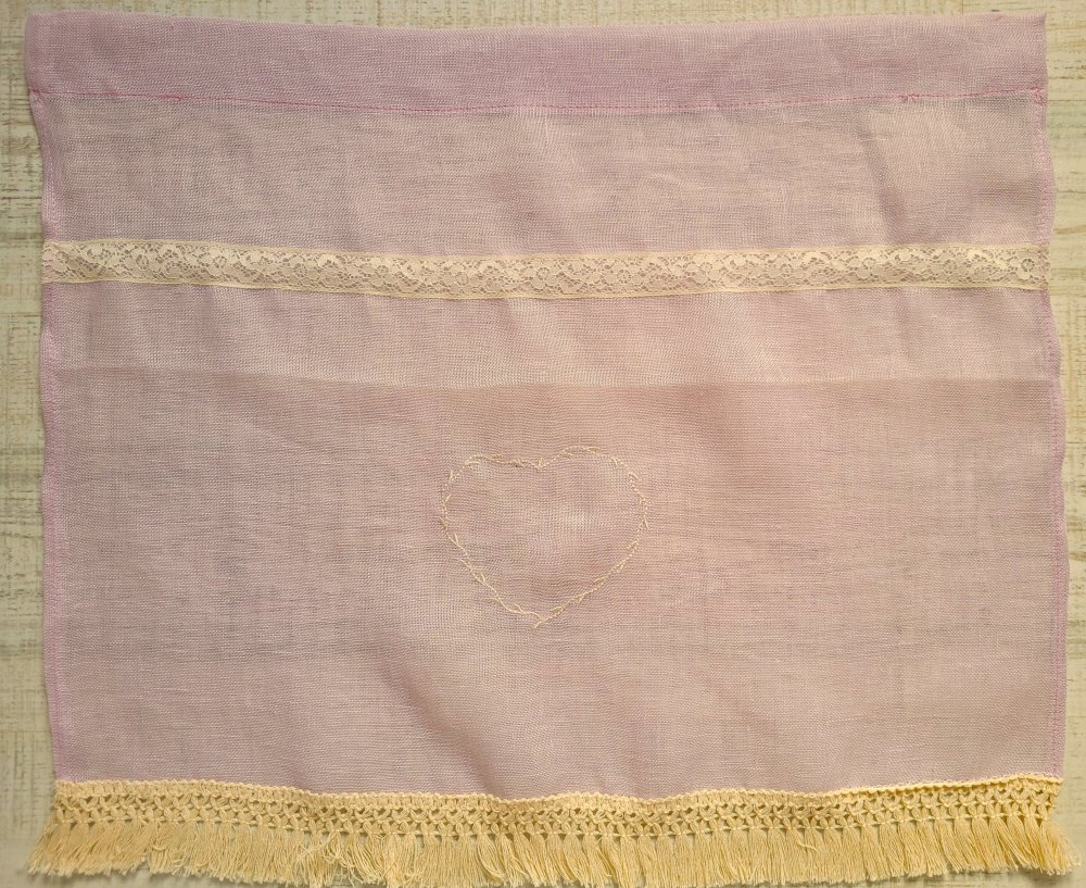 Brise bise en lin parme avec dentelle, coeur brodé.