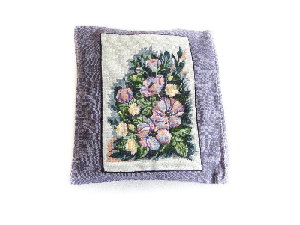 Bouquet d'anémones pour ce canevas vintage qui retrouve une seconde vie appliqué sur cette housse de coussin en coton de dimensions 40 X 40 cm, fermée par un zip sur le côté.