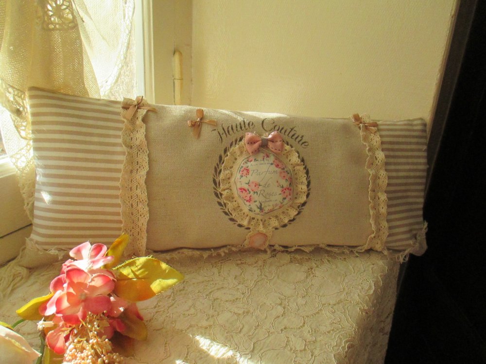 Coussin garni " Haute Couture... Parfum de fleurs " - Création - Au grenier Cosy -