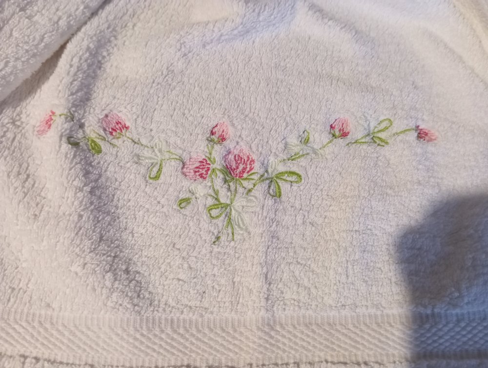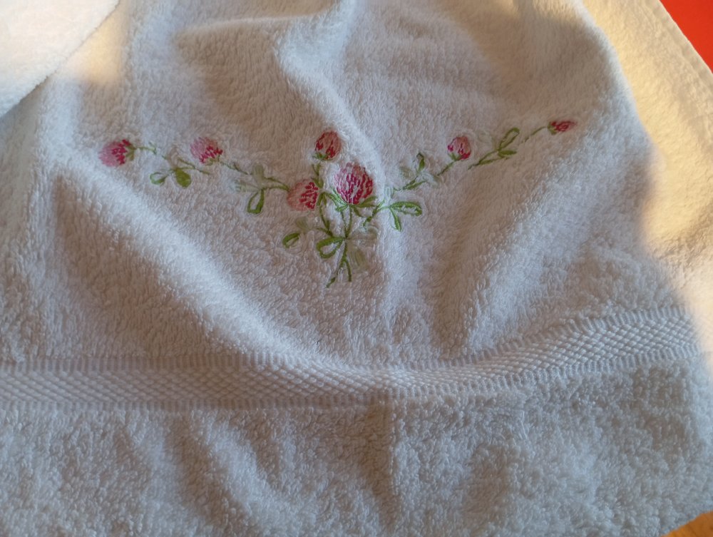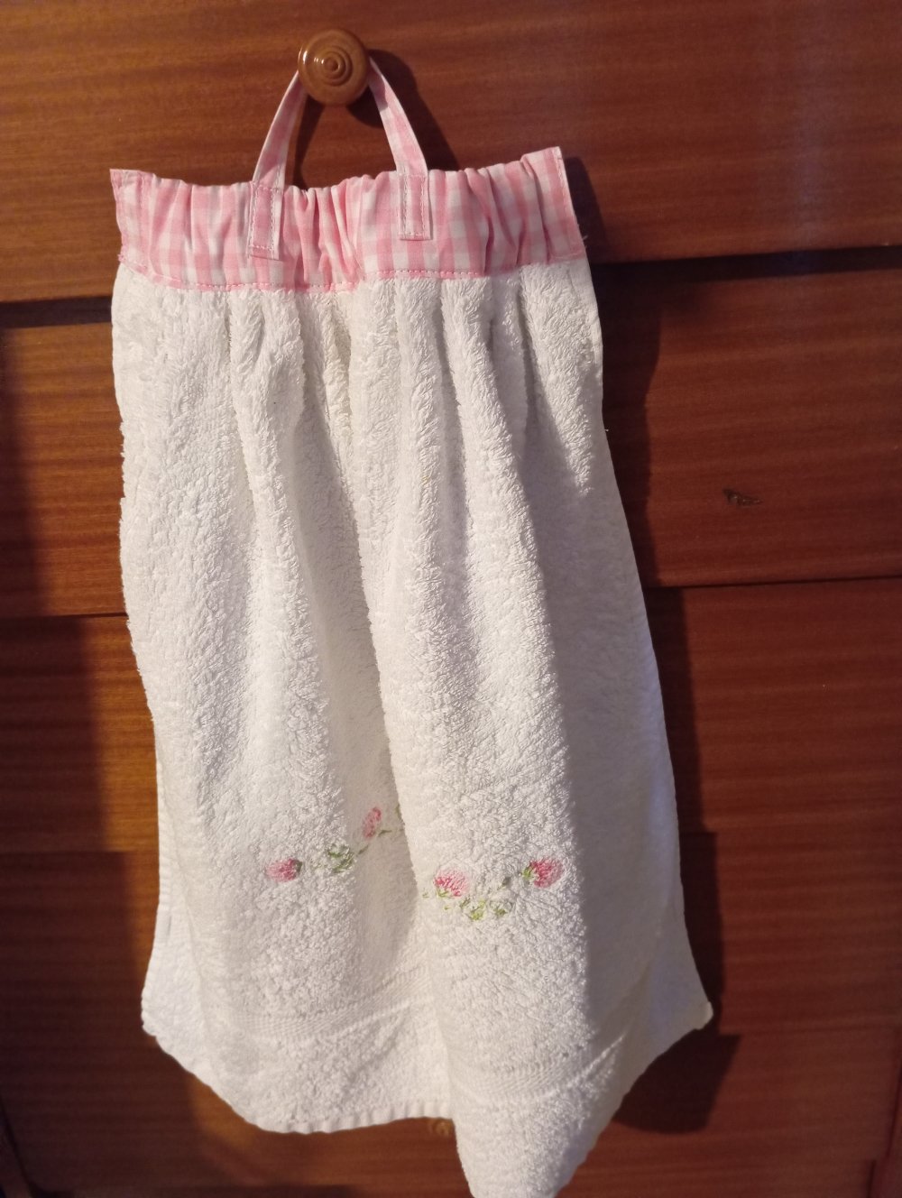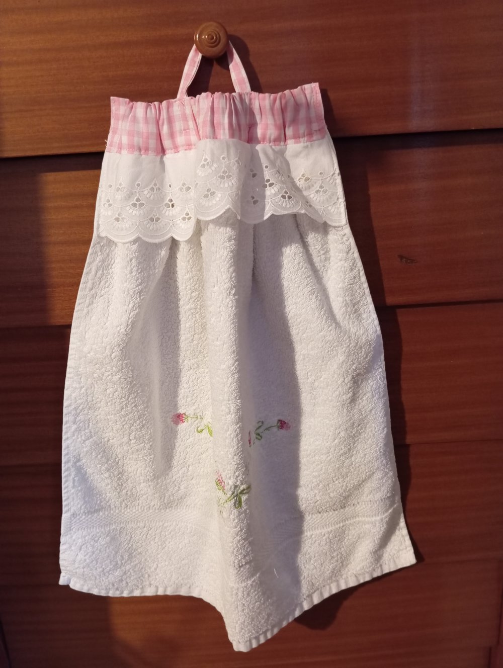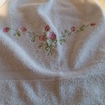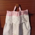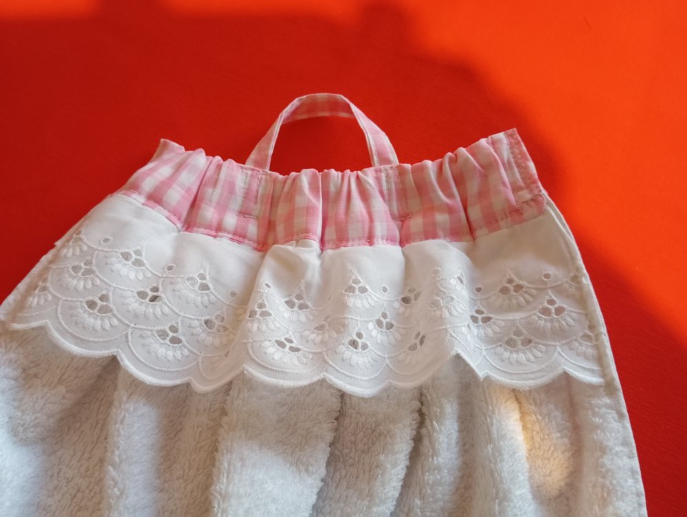 essuie-main pour WC ou salle eau en éponge coton brodé+haut vichy+ broderie anglaise