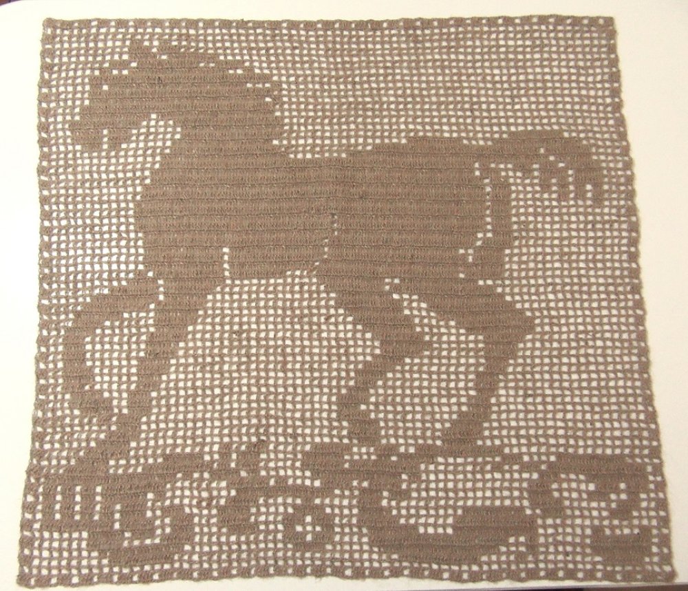 Nappe motif cheval en ficelle de jute création crochet fait main