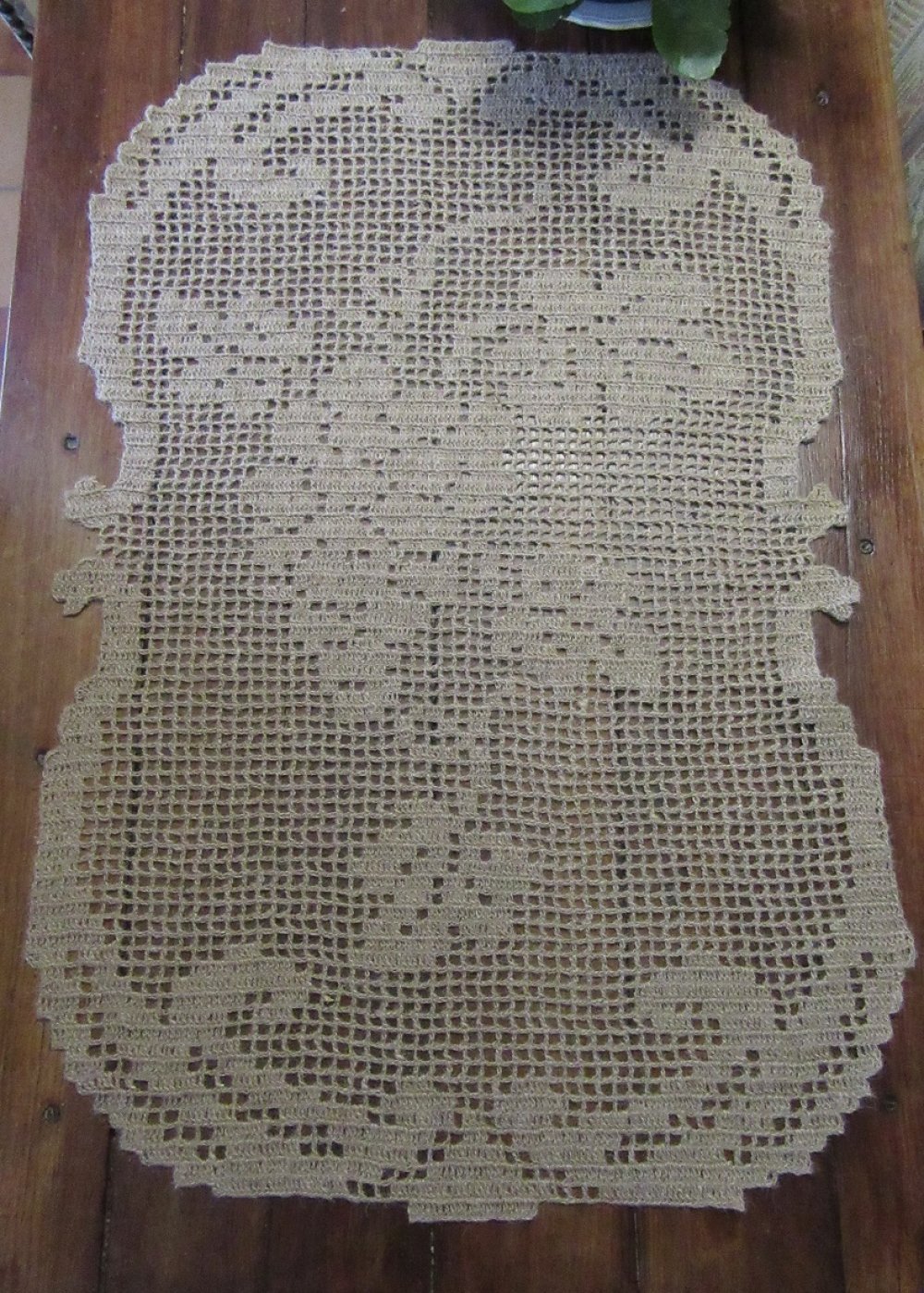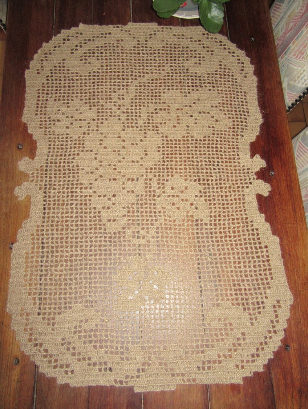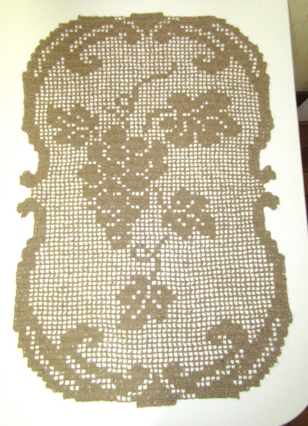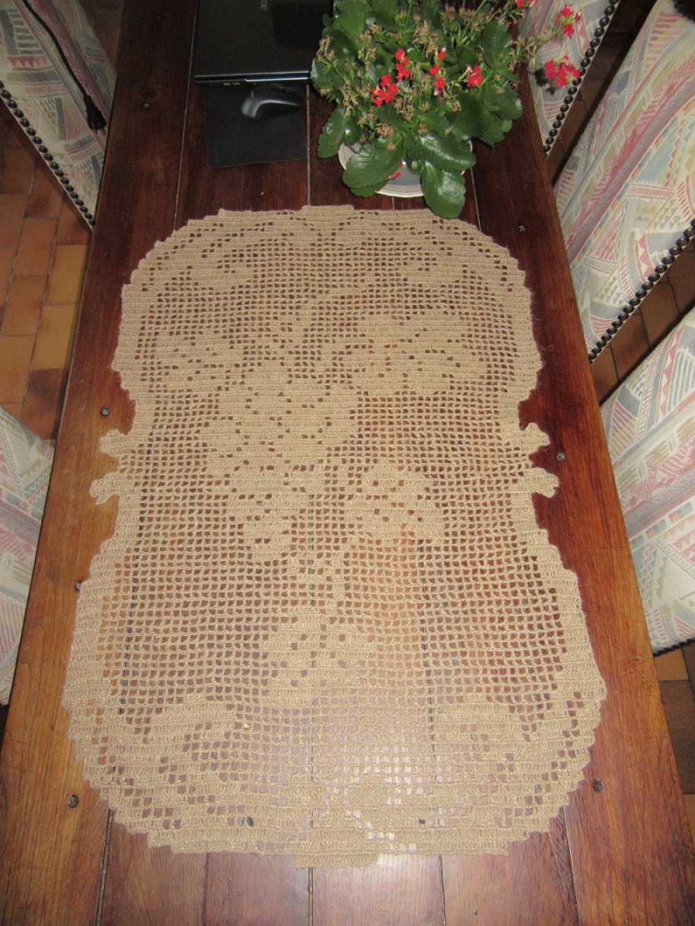 Grand napperon , tapis de table réalisé en ficelle de jute.