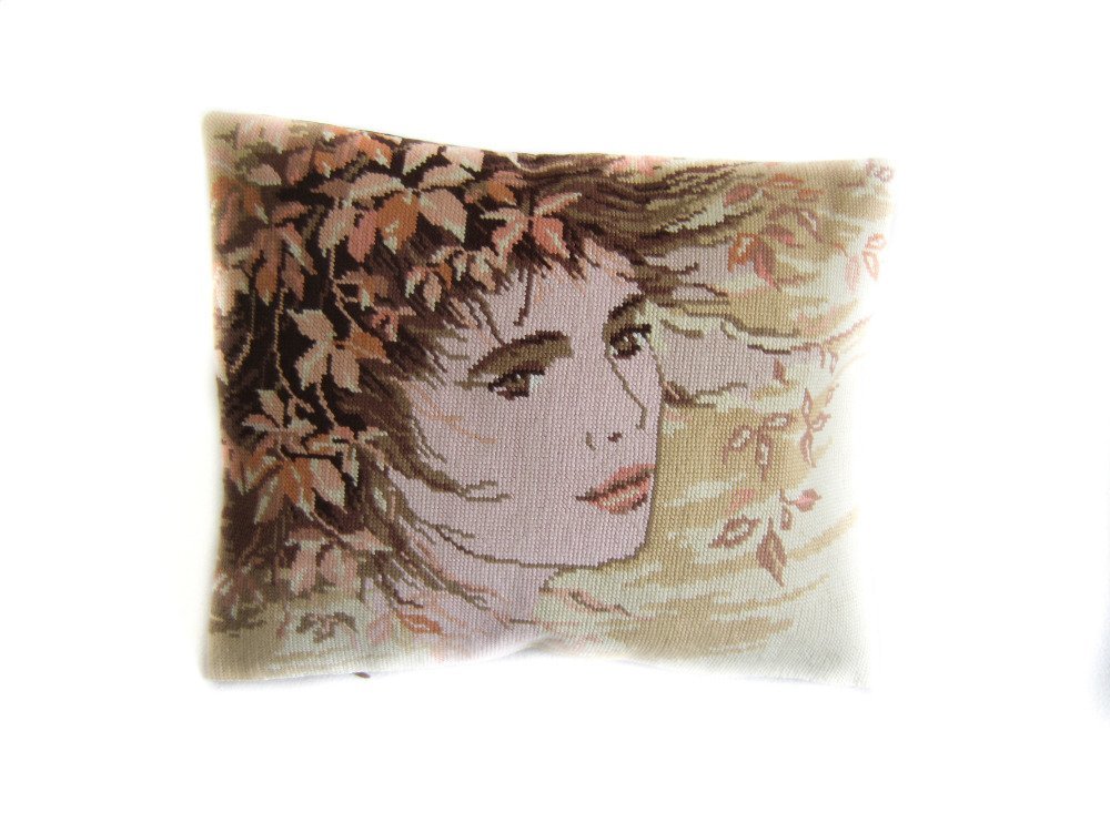 Housse de coussin Art Nouveau, inspiré Alfons Mucha ,canevas appliqué, création unique Laboutikasoizik.