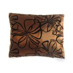 Il a été soigneusement appliqué sur une housse couleur cuivre rehaussée d'un motif floral floqué.