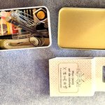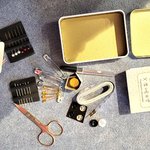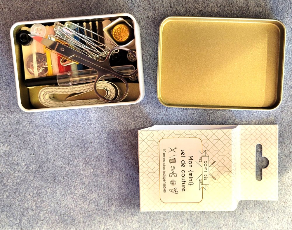 Petite boite métal avec 10 accessoires indispensables pour le raccommodage
