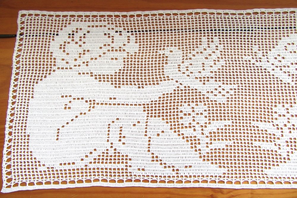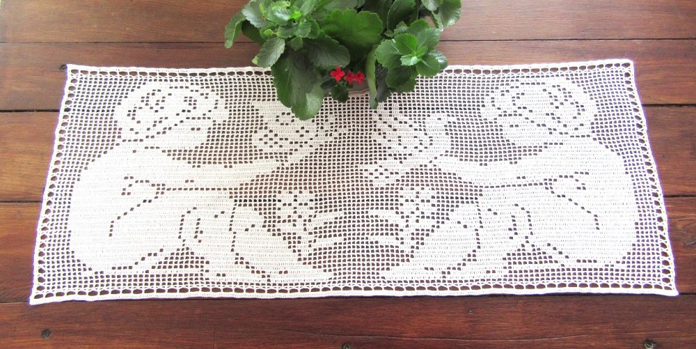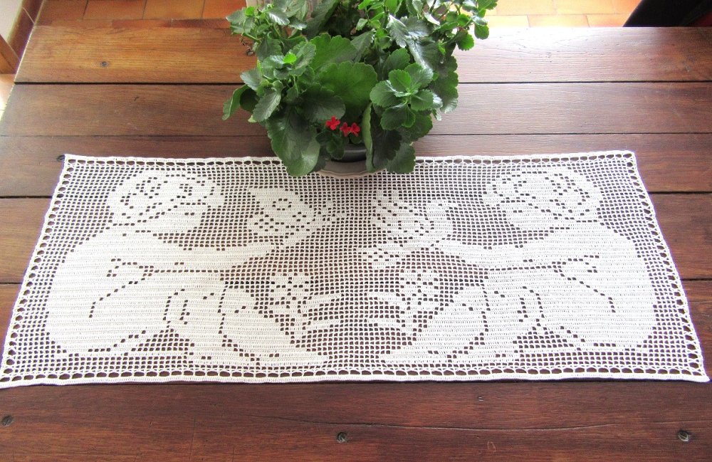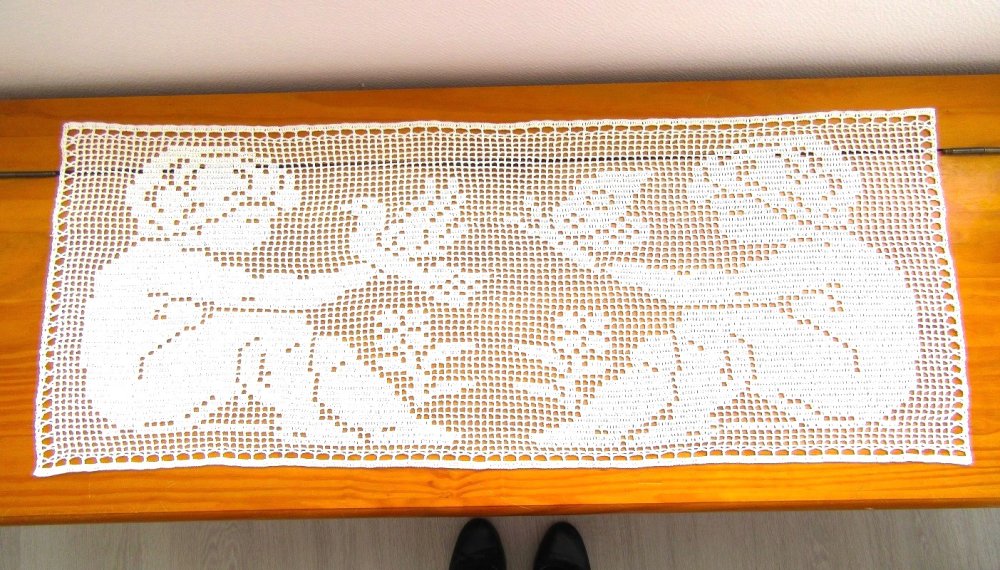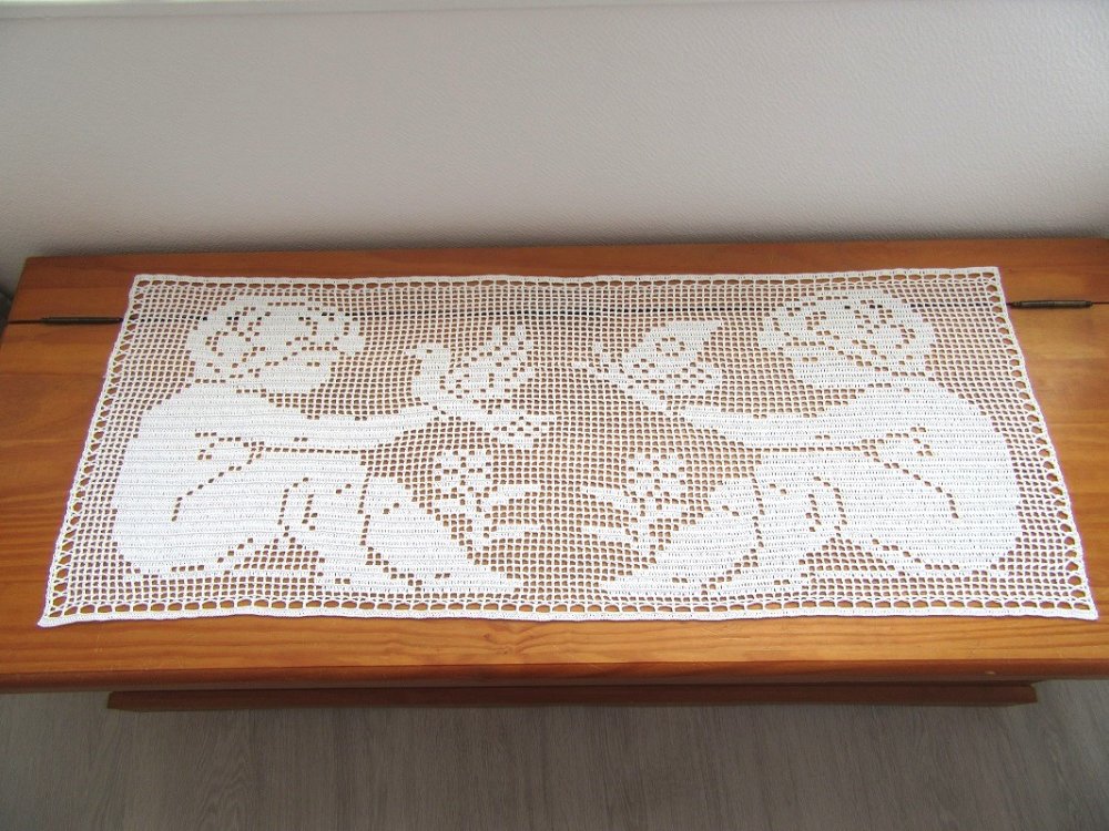 Napperon chemin de table en coton. Dentelle de crochet. Création fait main.