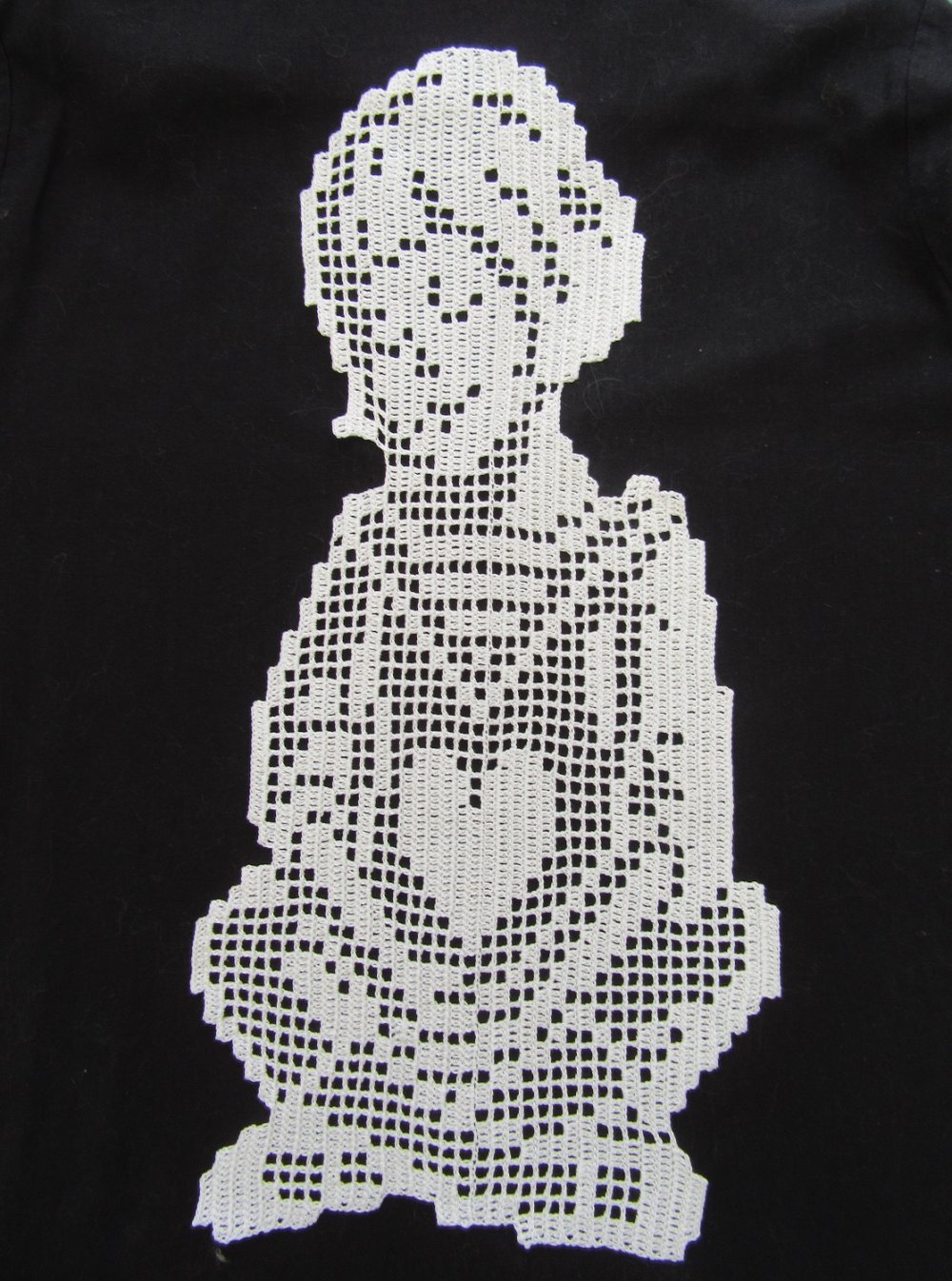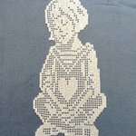 Napperon style art déco : Motif enfant à la marinière et coeur.