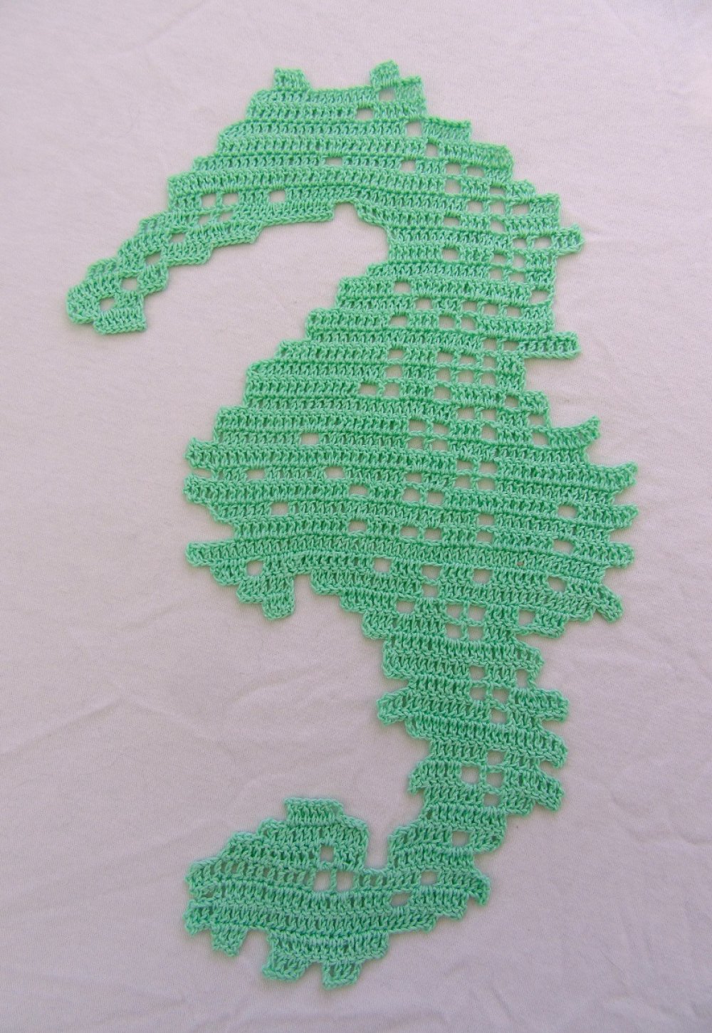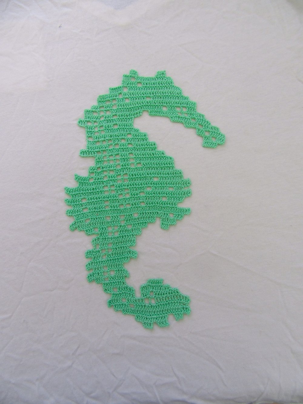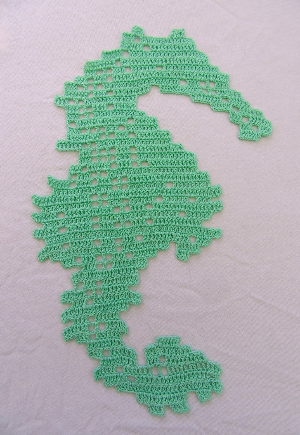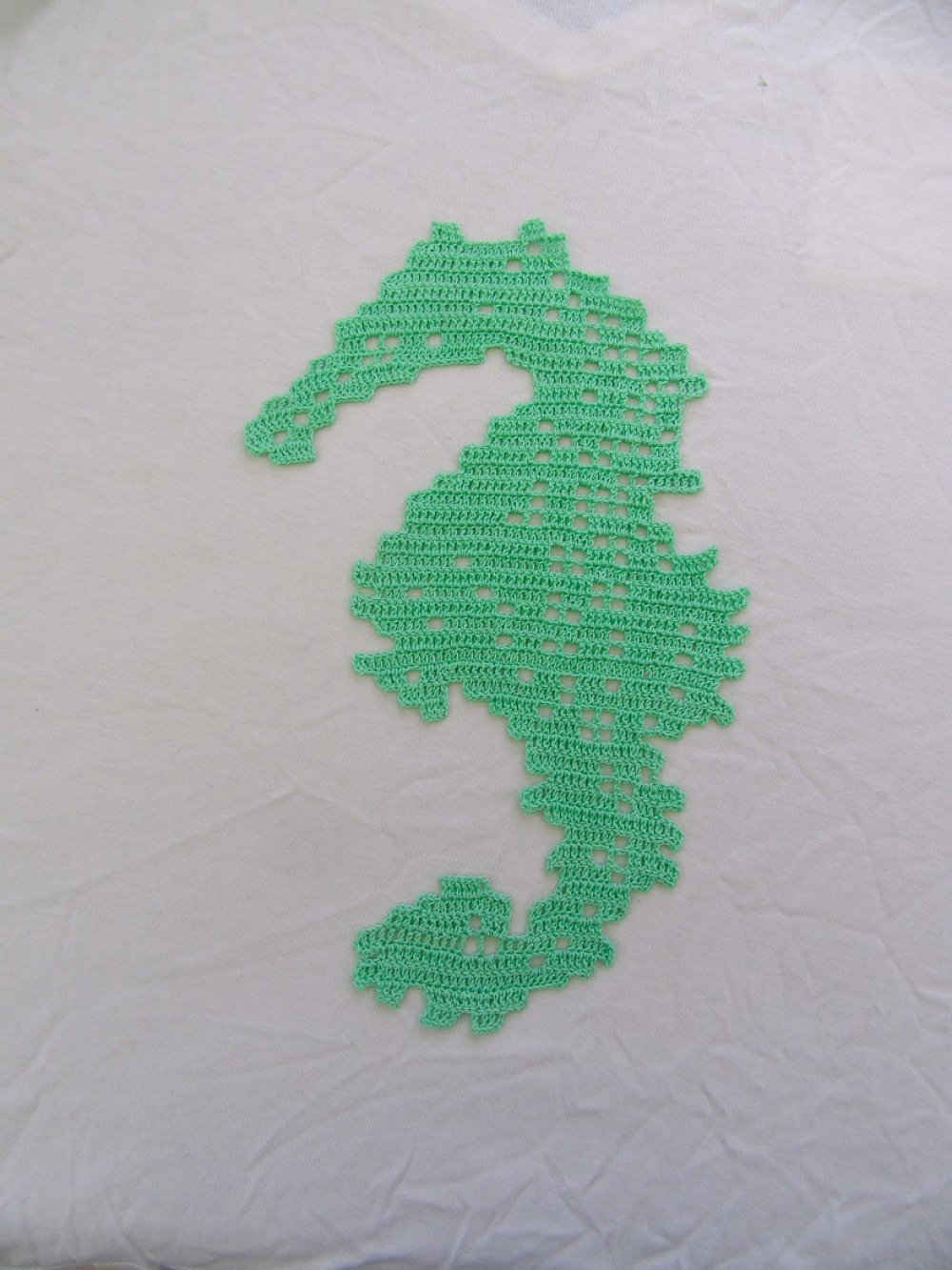 Napperon décoratif au crochet. Motif marin en coton couleur vert d'eau. Patch pour customiser.