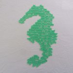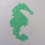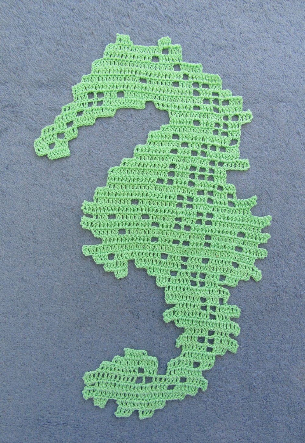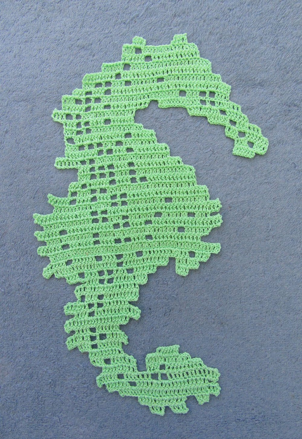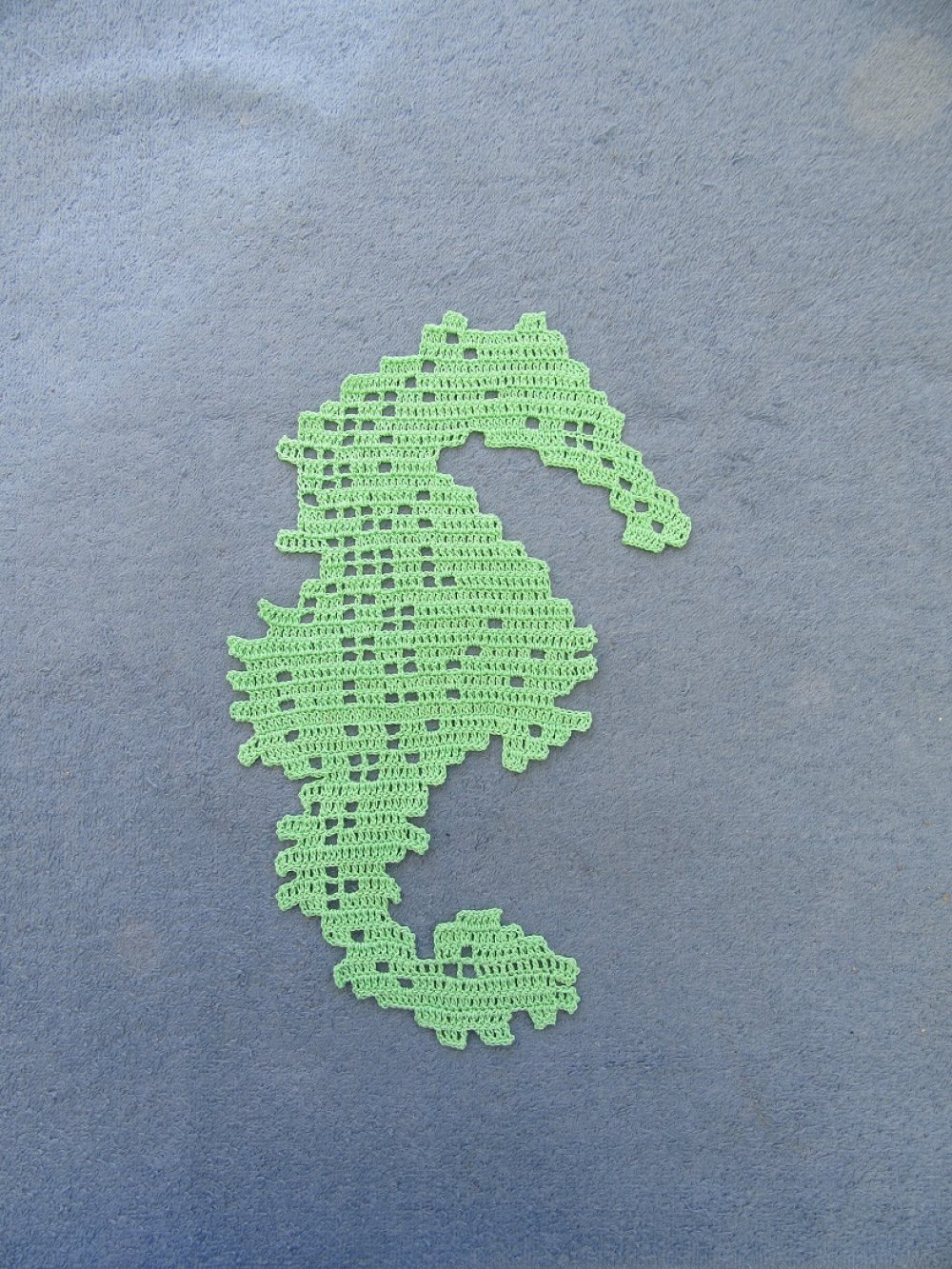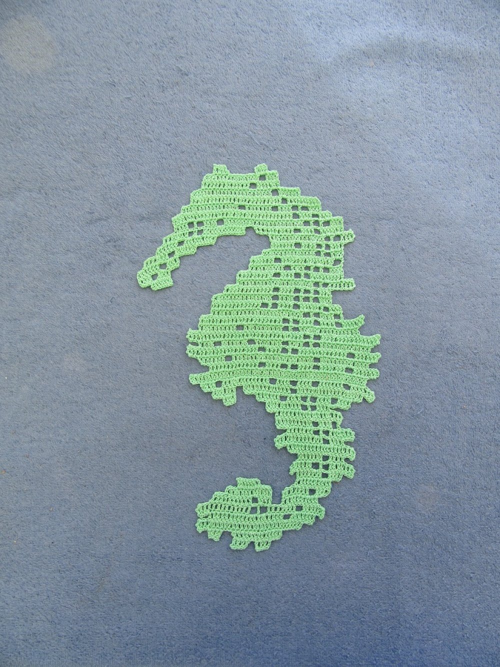 Napperon décoratif au crochet. Motif marin en coton couleur vert d'eau. Patch pour customiser.