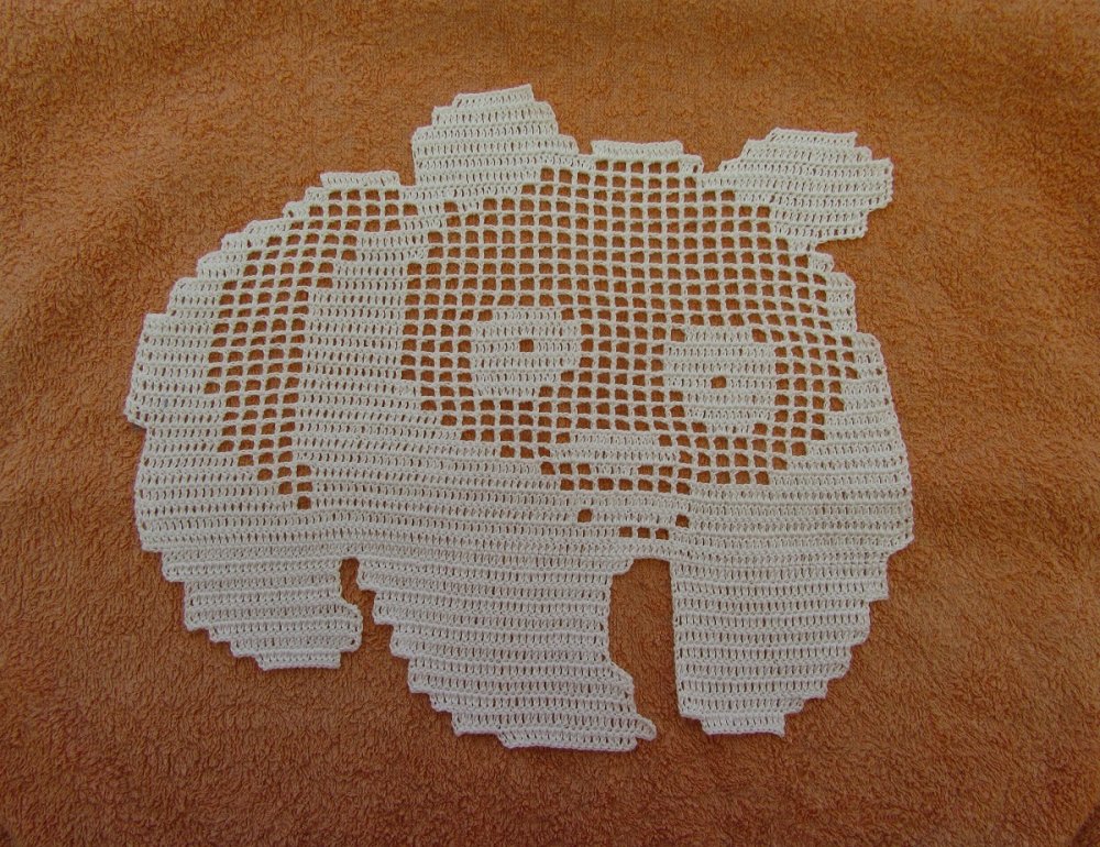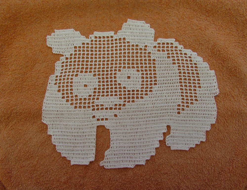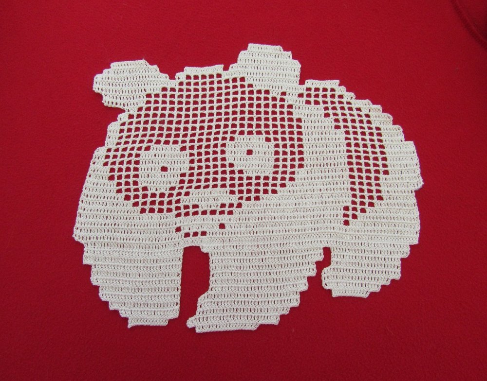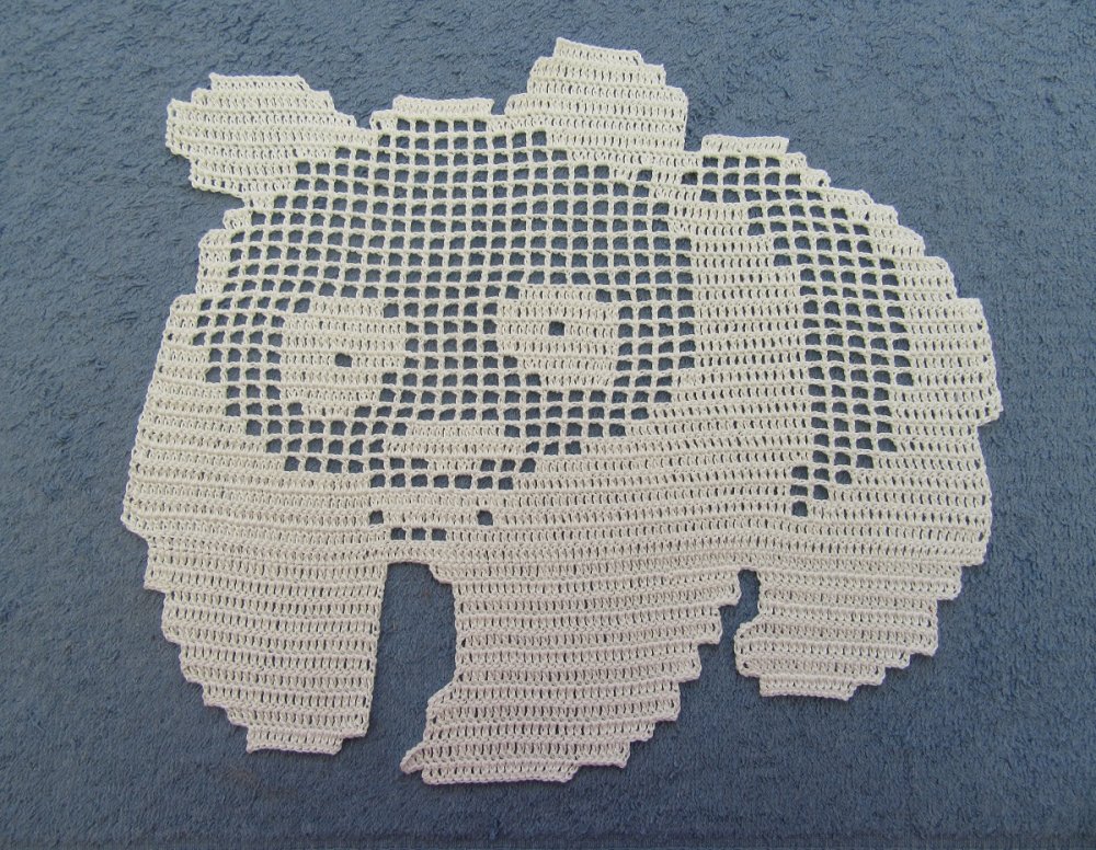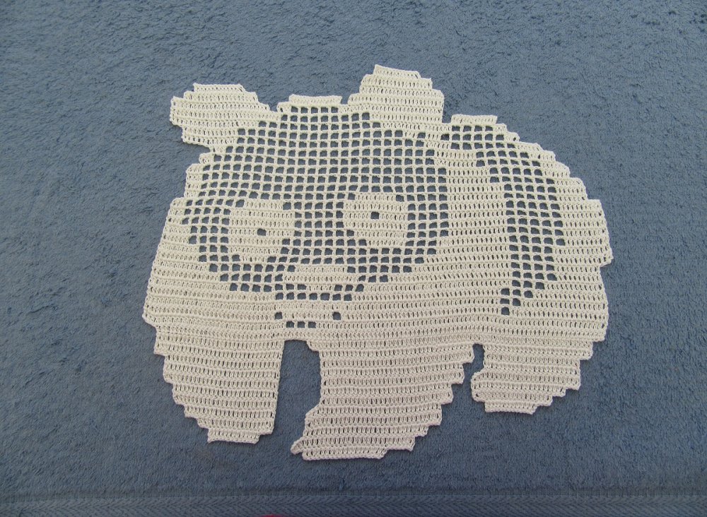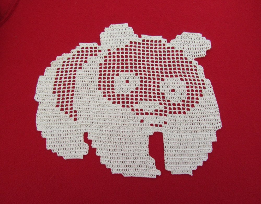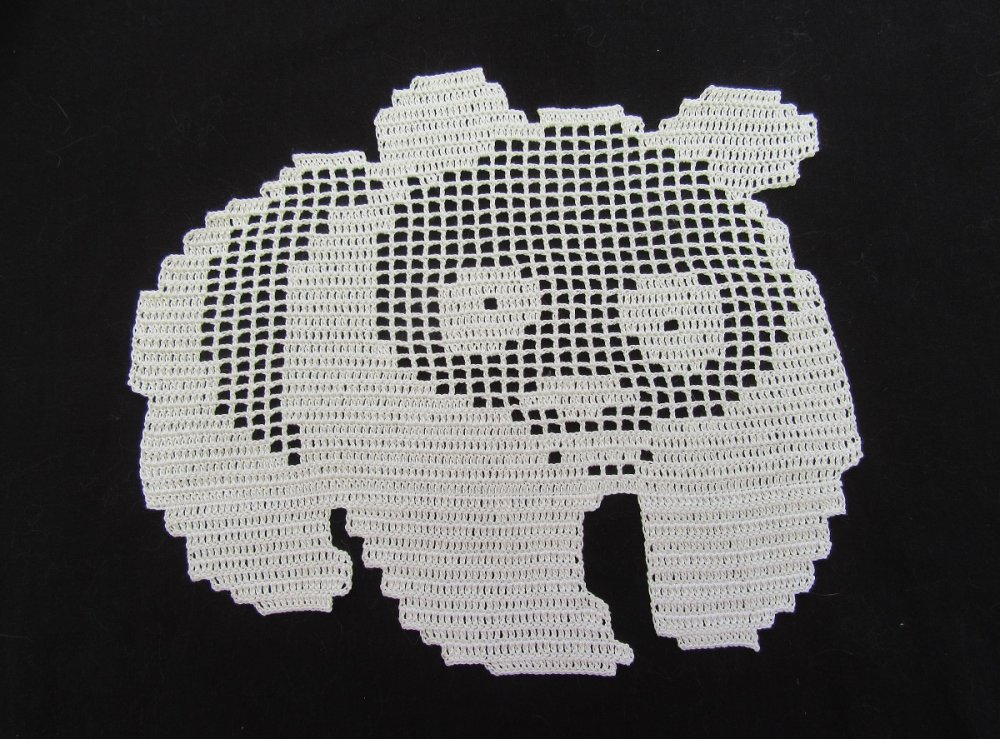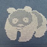 Napperon collection famille Panda réalisé au crochet en coton blanc.