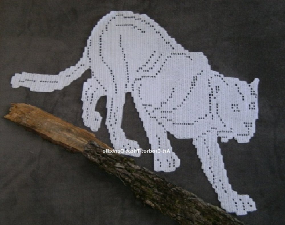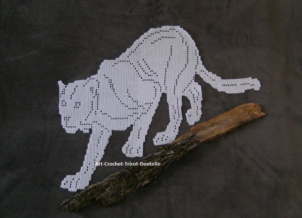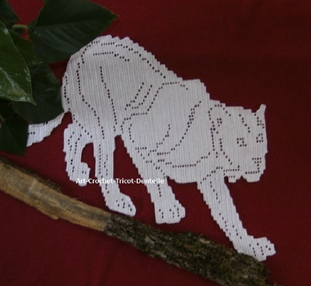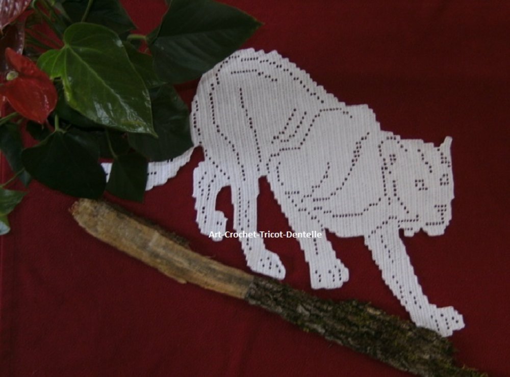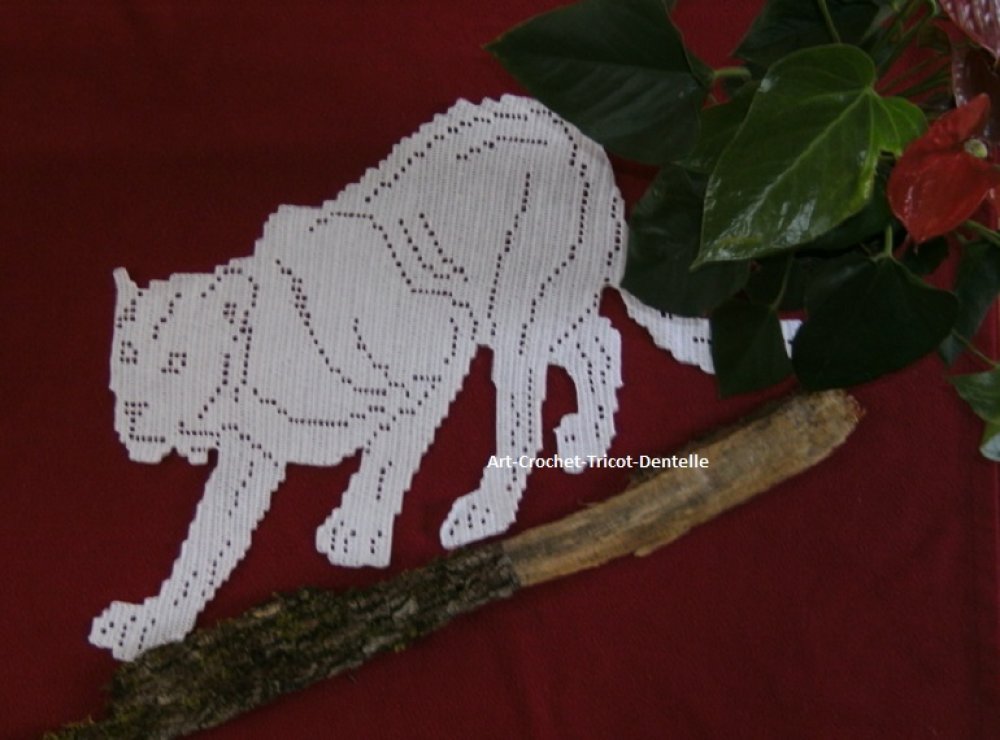 Napperon félin réalisé au crochet en coton blanc. Création dentelle de crochet.