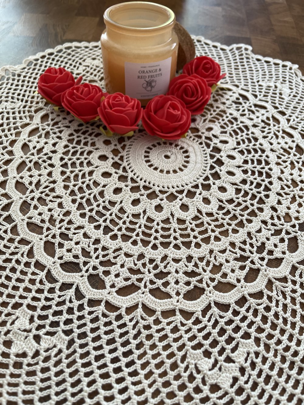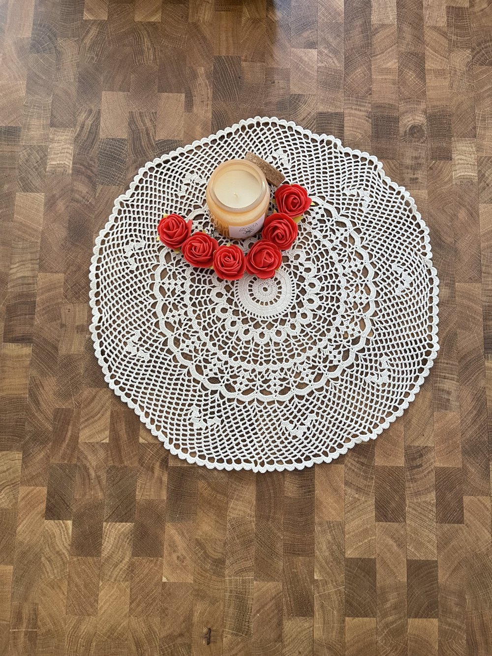 Passionnée de crochet en dentelle, je crée des napperons faits main et des pièces uniques pour votre intérieur.