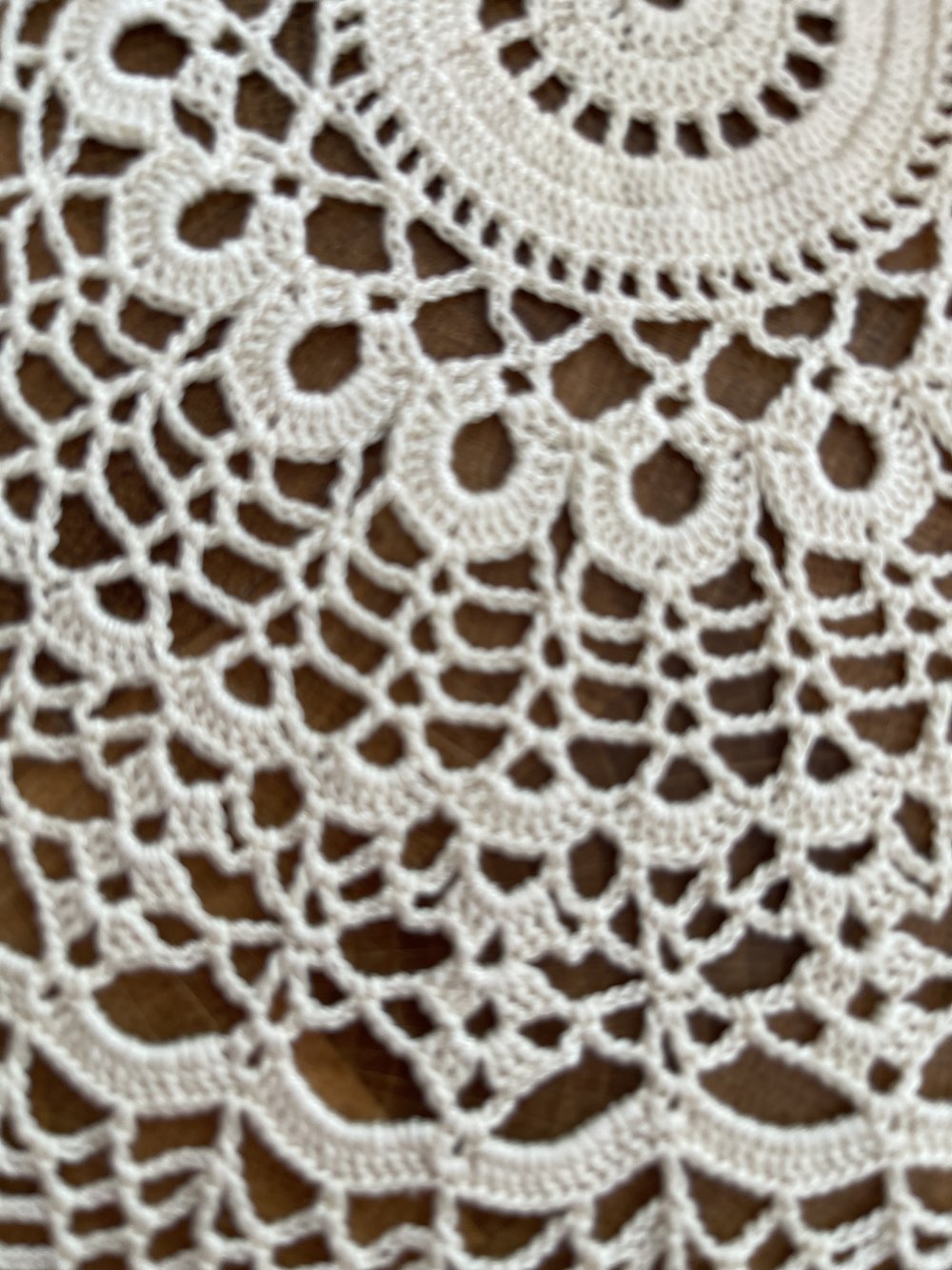 J'ai réalisé ce joli napperon en optant pour un fil écru pour une touche de légèreté et 100% coton. Il mesure 37 cm de diamètre.
