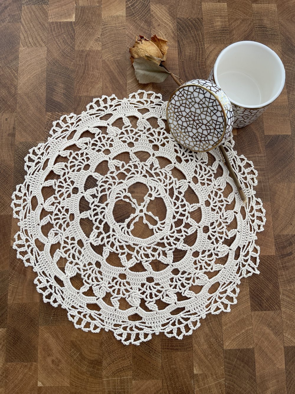 Passionnée de crochet en dentelle, je crée des napperons faits main et des pièces uniques pour votre intérieur.