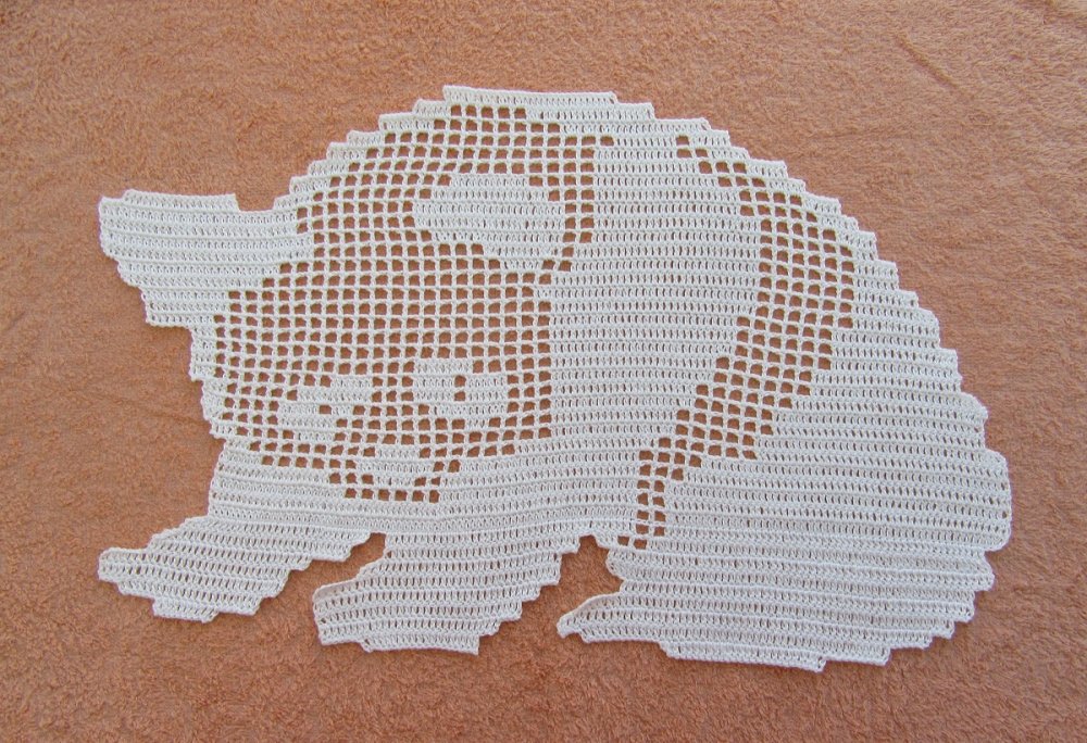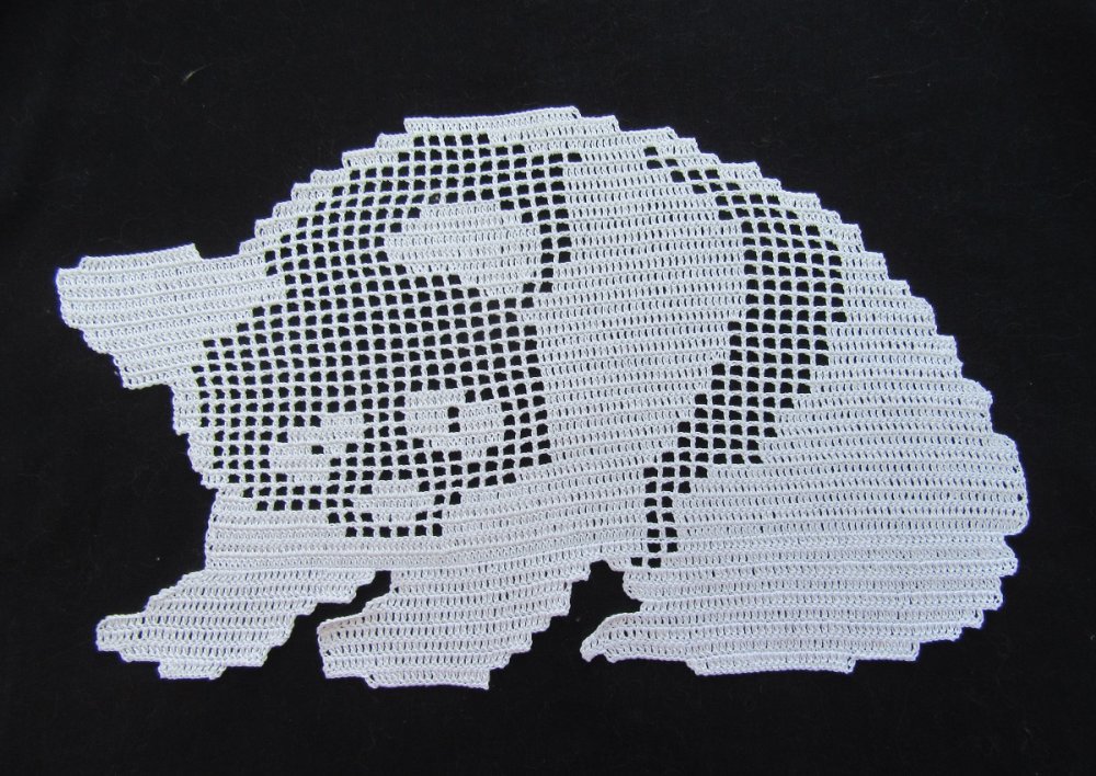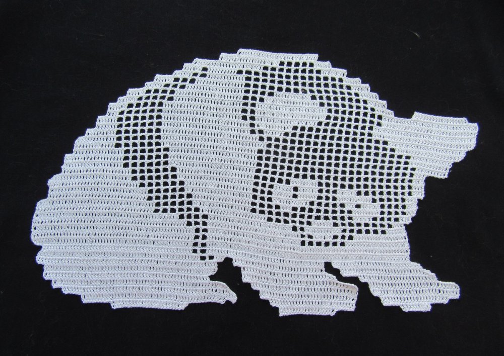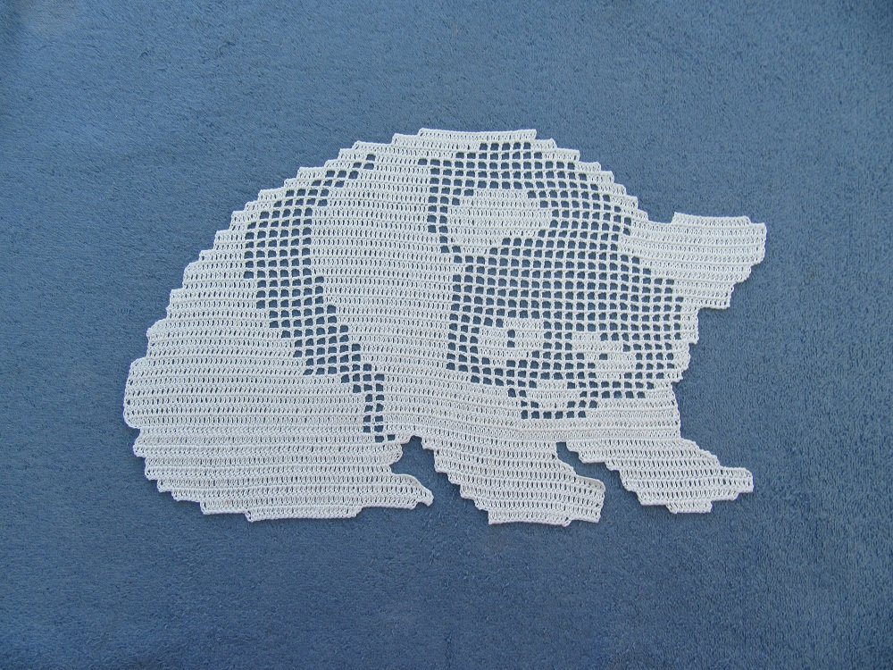 Panda en dentelle de crochet cotn blanc fait main. Crochet style contemporain.