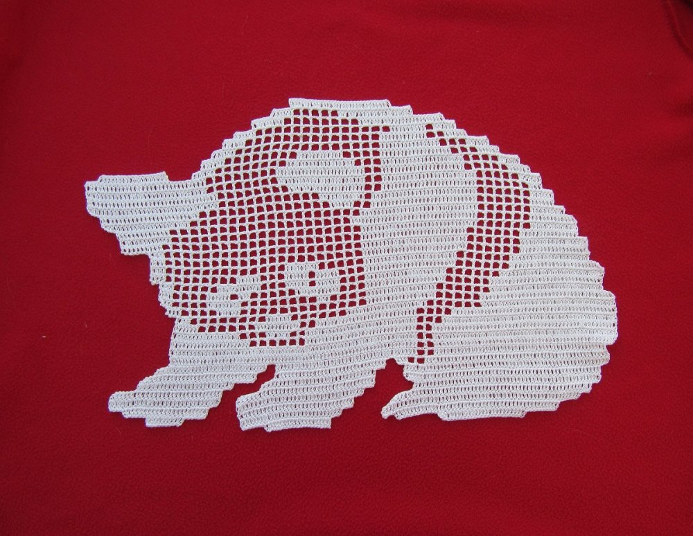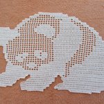 Napperon collection famille Panda réalisé au crochet en coton blanc.