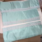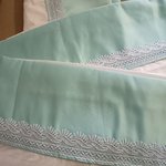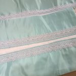 Parure de drap lit simple en coton blanc – drap plat décoré d une bande satin vert d eau, dentelle sur les bordures, 3 pièces – Fait main & Neuf – Livraison gratuite