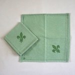 serviette de cocktail peinte à la main en coton vert d'eau fleur de lys verte