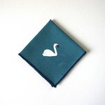 serviette de cocktail peinte à la main en coton vert forêt avec un cygne blanc,. La peinture est fixée au fer chaud et ne bouge pas.