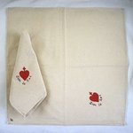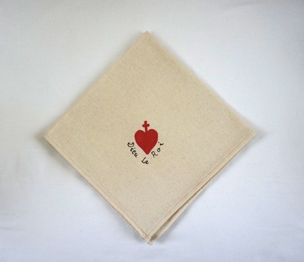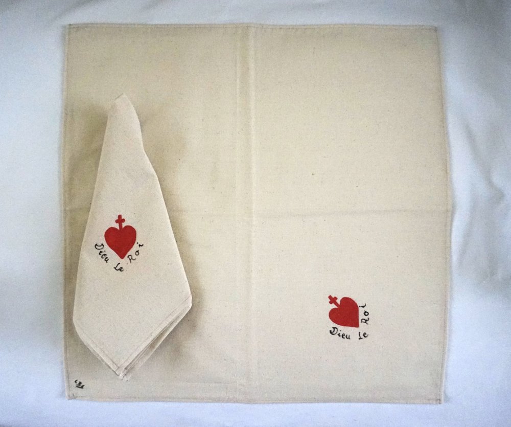 serviette de table peinte à la main en coton coton beige coeur vendéen rouge