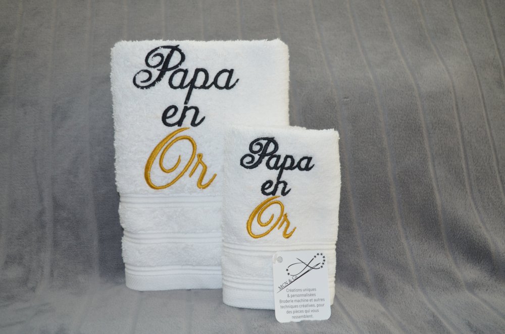Serviettes brodées "Papa en Or" – Serviette de Bain, Serviette de toilette & serviette invité – Cadeau fête des pères – Personnalisable