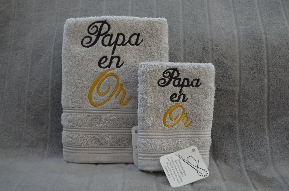 Offrez à votre papa un cadeau à la fois utile et rempli d’amour avec nos serviettes brodées "Papa en Or" 💛