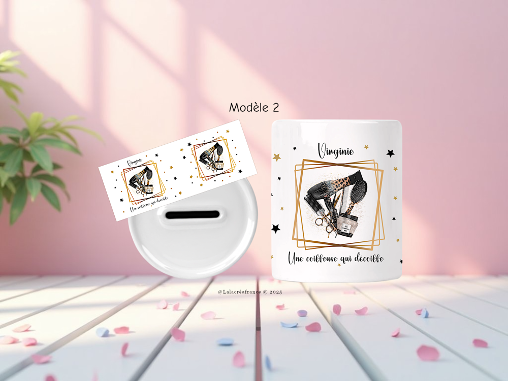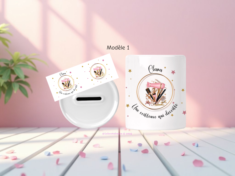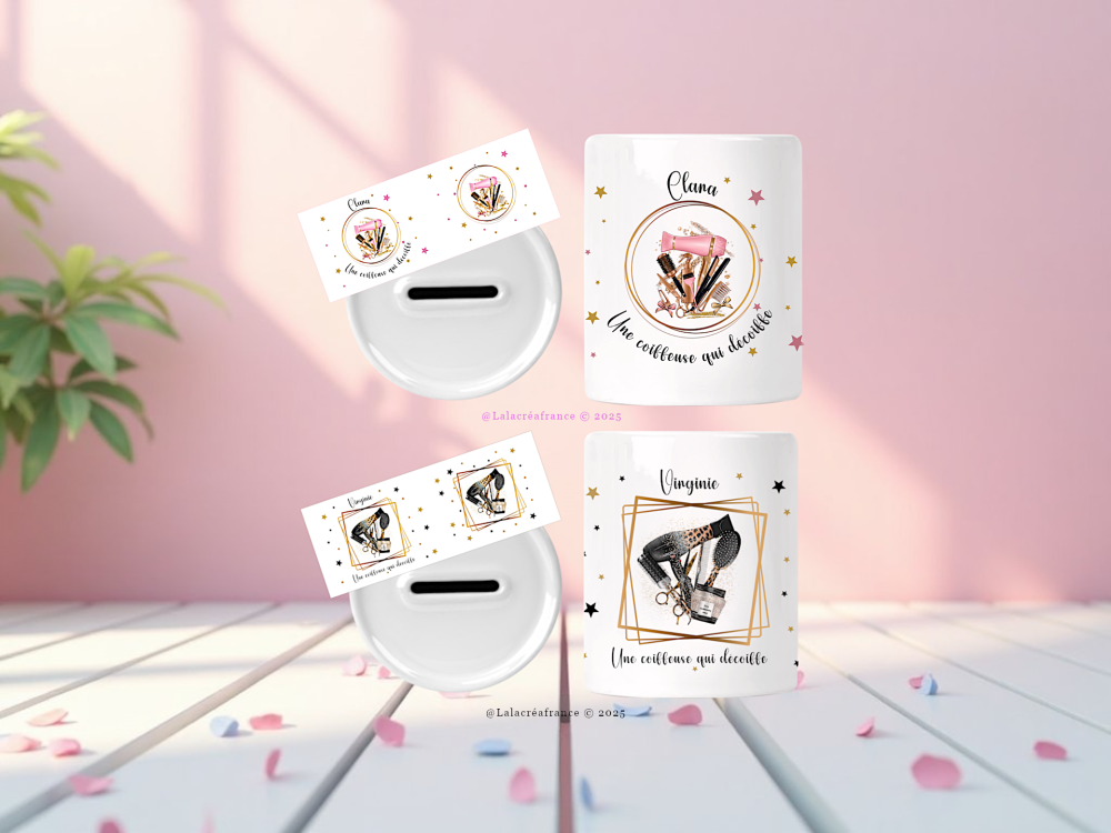 Cette tirelire personnalisée est la touche parfaite pour votre comptoir de salon : fun, décorative et impossible à rater.